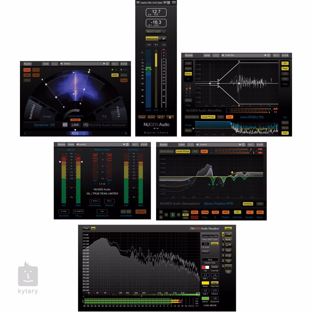 L'ensemble comprend une réverbération, un outil d'égalisation stéréo, un visualiseur, un limiteur, un outil maître ou un égaliseur.