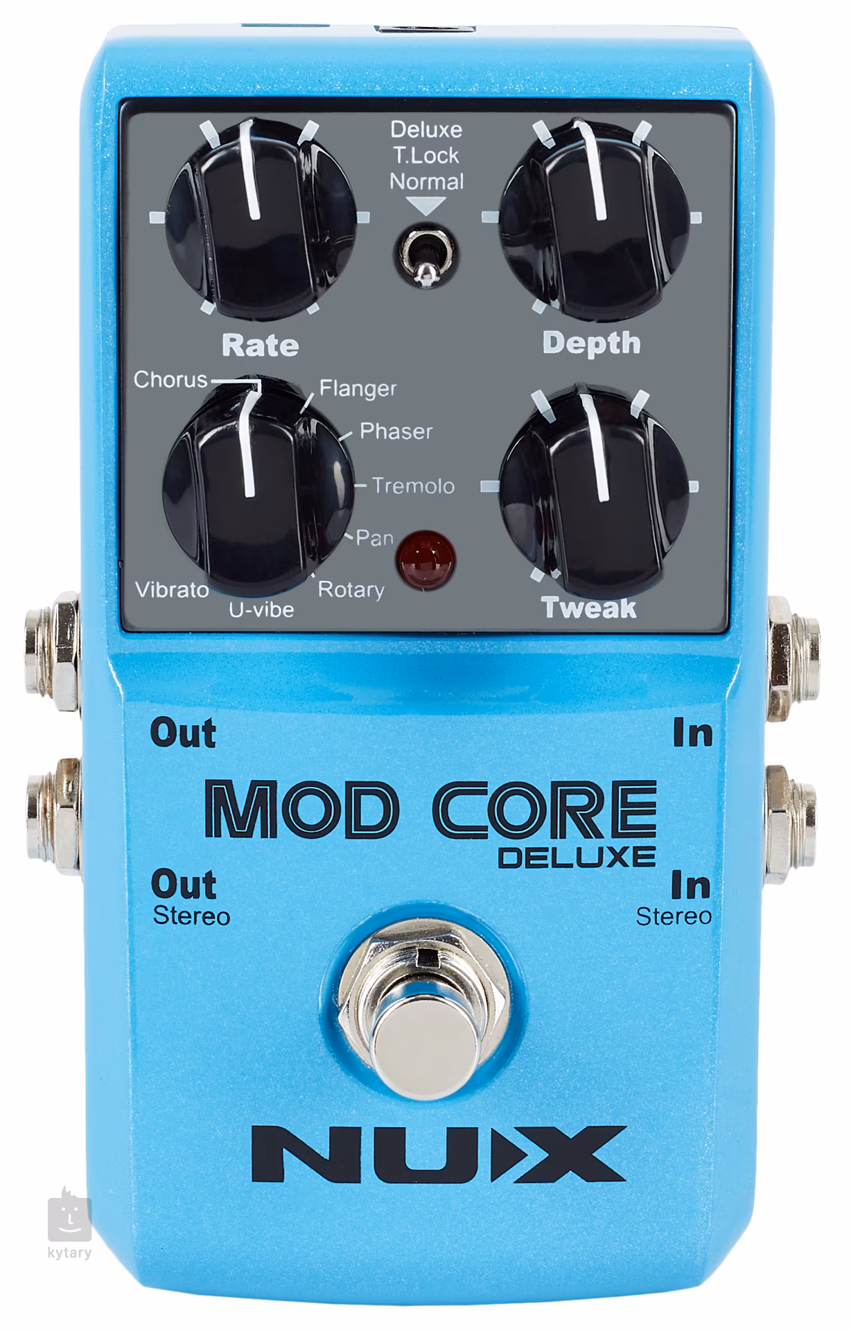 Mod Core Deluxe is a fully-featured pro-quality modulation effects pedal. Add-in Rate and Depth controls to adjust main parameters and Tweak control to manipulate key parameters for each effect, and you get more tone-shaping options than you'll ever find in a modulation pedal. It has 8 modulation effects with 2 types of algorithms fitting every musician's needs for sound improvement and colorization.