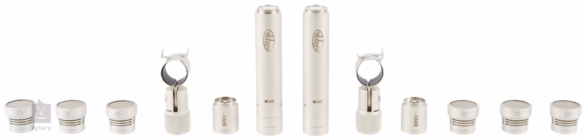 Le MK-012 est un microphone à condensateur contenant trois petites capsules de microphone interchangeables avec des caractéristiques directionnelles cardioïdes, hypercardioïdes et sphériques. Doté d'une large gamme de fréquences et d'un son cristallin, le MK-012 convient aux voix, aux voix-off, aux enregistrements de diffusion, à la guitare acoustique ou aux percussions. Le microphone peut donc principalement capter les détails de votre instrument et éliminer parfaitement le bruit ambiant. Il convient donc à pratiquement toutes les situations où une réponse équilibrée sur une large gamme de fréquences et une capture précise du son sont nécessaires. L'ensemble comprend deux supports de microphone, six capsules de microphone, une mallette en bois pour un transport en toute sécurité et deux dispositifs d'atténuation d'entrée de 10 dB, qui seront particulièrement utiles pour l'enregistrement d'instruments bruyants. La paire stéréo MK-012 vous permet d'enregistrer davantage de son surround avec une plus grande souplesse de détection.