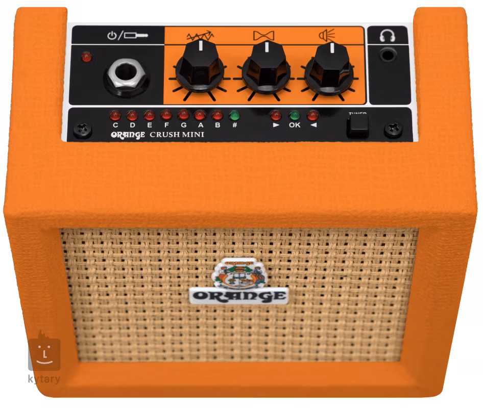 Vous pouvez désormais profiter du son classique d'Orange partout. L'Orange Crush Mini est un combo transistorisé ultra-compact qui peut être alimenté par une pile 9V ou un adaptateur optionnel - tout comme vos effets. Il offre un canal et trois commandes simples pour le niveau de gain, la couleur du son et le volume. Les fabricants n'ont pas oublié l'accordeur chromatique intégré avec des LED claires sur le panneau de commande, la sortie casque et l'entrée Aux In pour connecter vos pistes audio/mp3 préférées sur lesquelles vous pouvez improviser librement. Connectez un haut-parleur externe au combo avec la sortie à impédance de 8 ohms pour ajouter plus d'espace à votre son. Bien entendu, le design présente une surface en vinyle orange typique et une calandre distinctive.