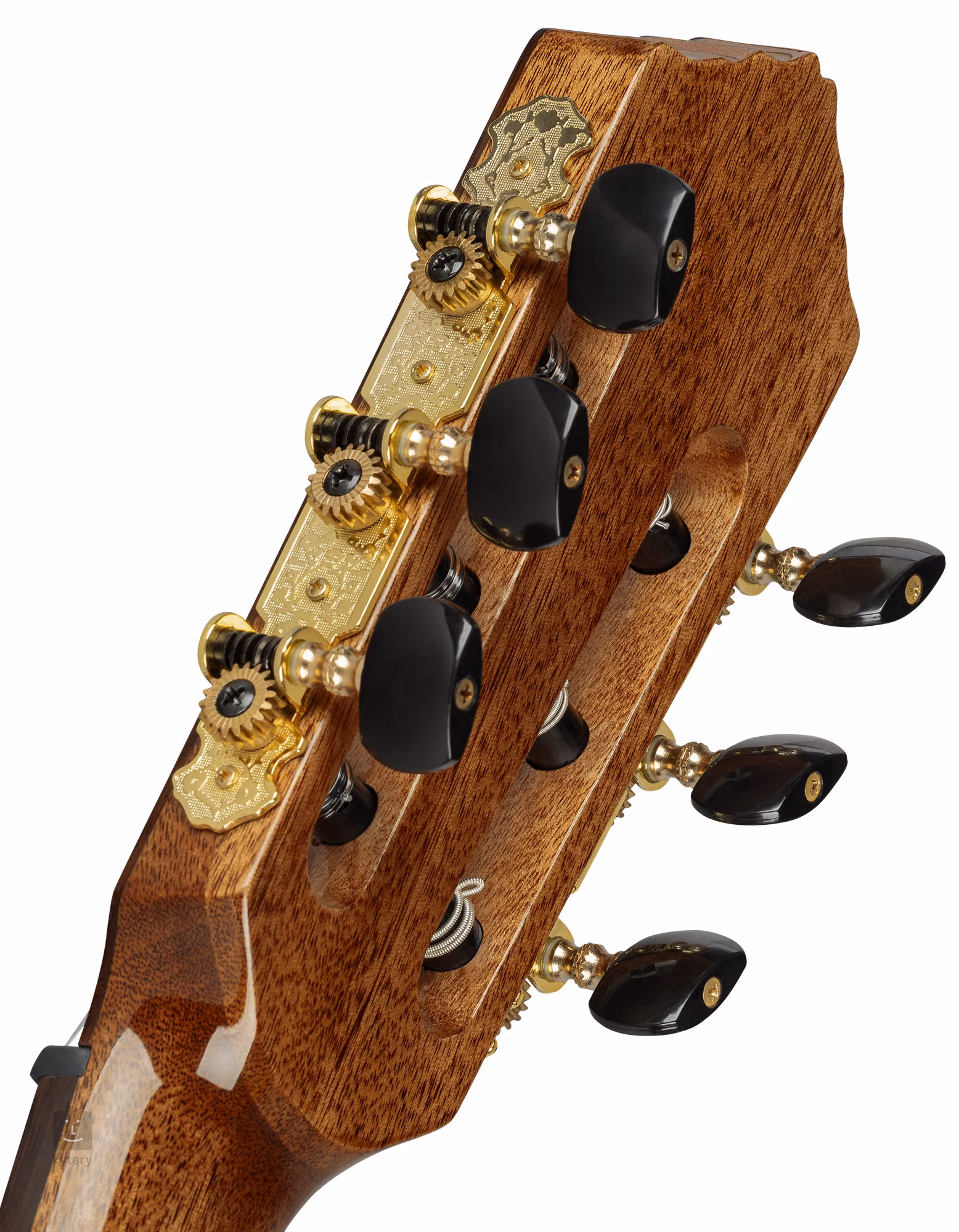 Une touche en palissandre de dix-neuf frettes est collée sur le manche en okoumé. Le manche est renforcé par une entretoise à deux voies, tandis que la découpe inférieure du corps facilite le jeu dans les positions les plus élevées de la touche. Les cordes sont montées dans les mécaniques de la société en finition dorée avec chevilles noires et touche en palissandre. La qualité de fabrication est accentuée par l'accoudoir pratique, la rosace en bois et la table d'harmonie en nacre.