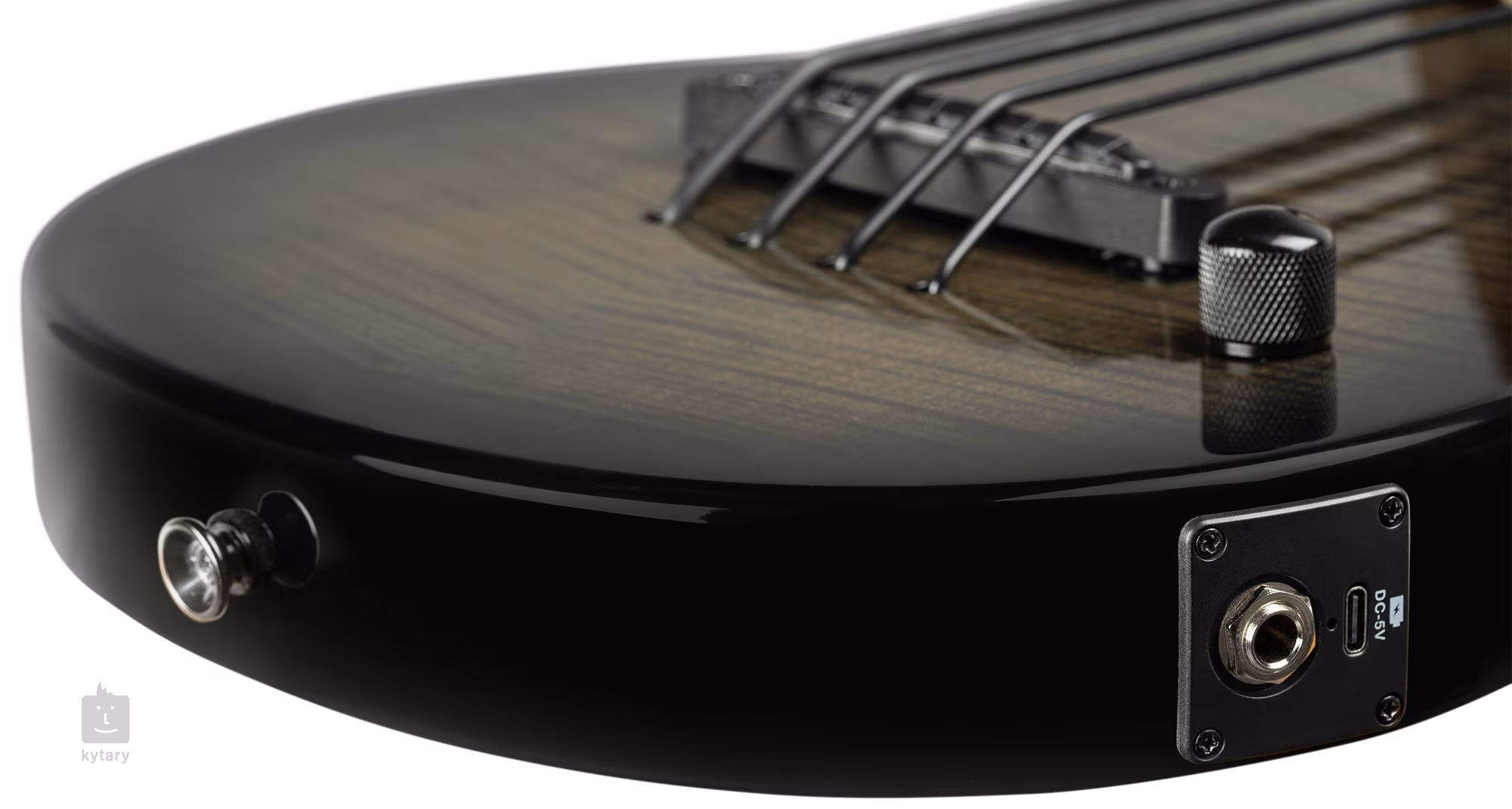 Le système MagusExpress prend en charge le système sonore de l'ukulélé. Il suffit de charger la batterie intégrée à l'aide du câble USB-C fourni. Les cordes sont maintenues dans les mécaniques de l'entreprise et la touche en purpleheart.