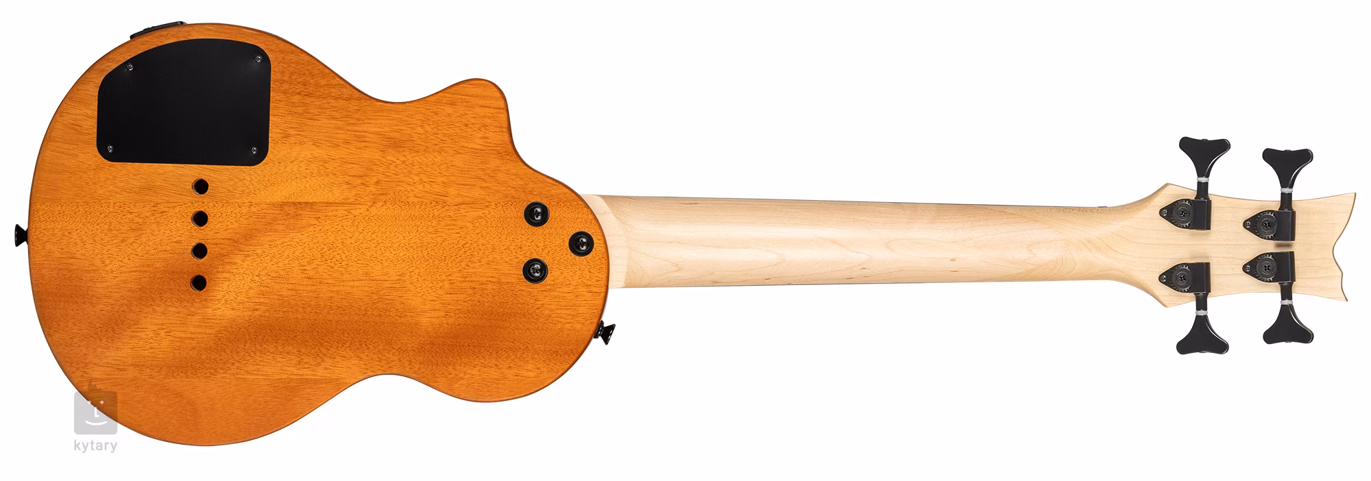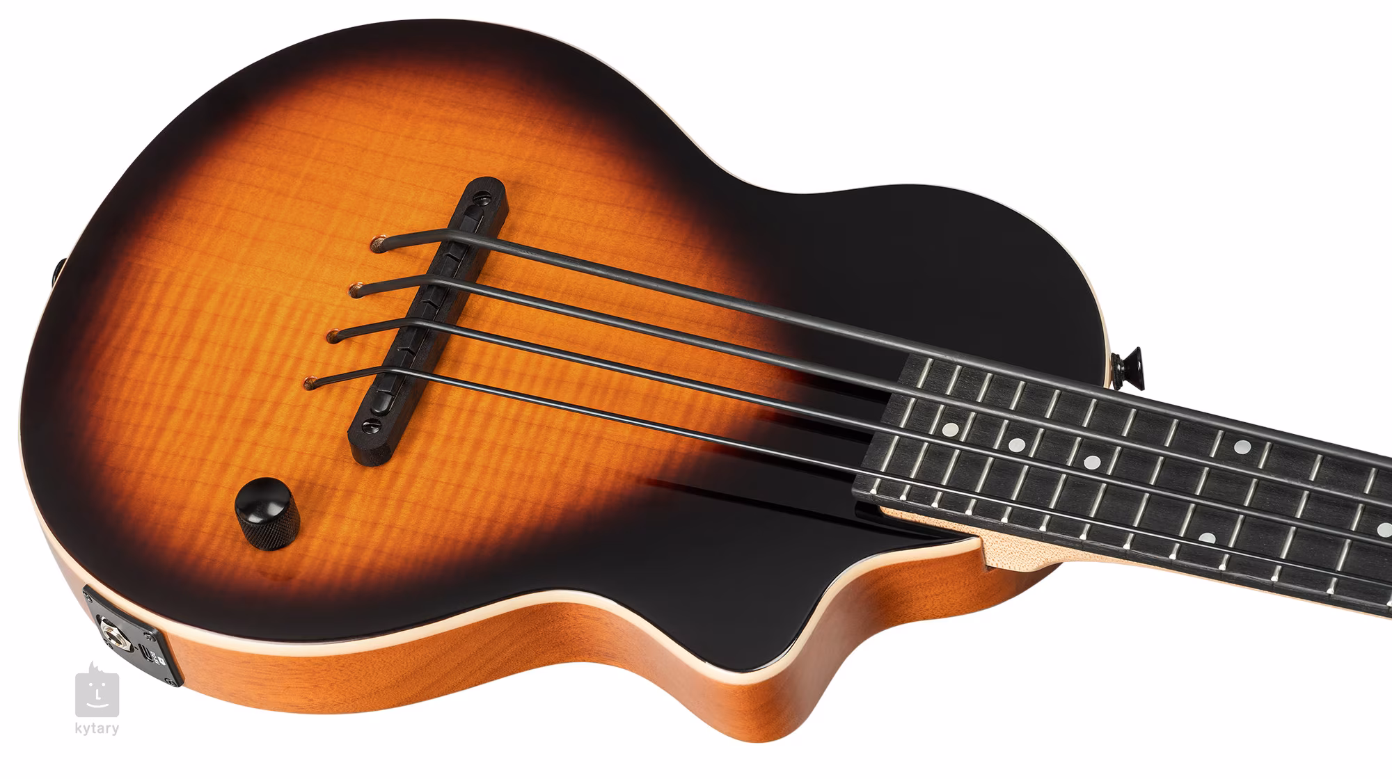 Le corps de l'ukulélé basse Ortega Neo BS TSB est en okoumé massif et la table est en érable ondé. L'érable figuré est mis en valeur par la laque brillante et la finition Tobacco Sunburst. Le manche en érable est surmonté d'une touche en bois de palissandre comportant vingt frettes. Un pan coupé dans la partie inférieure du corps permet d'atteindre les positions les plus élevées de la touche.