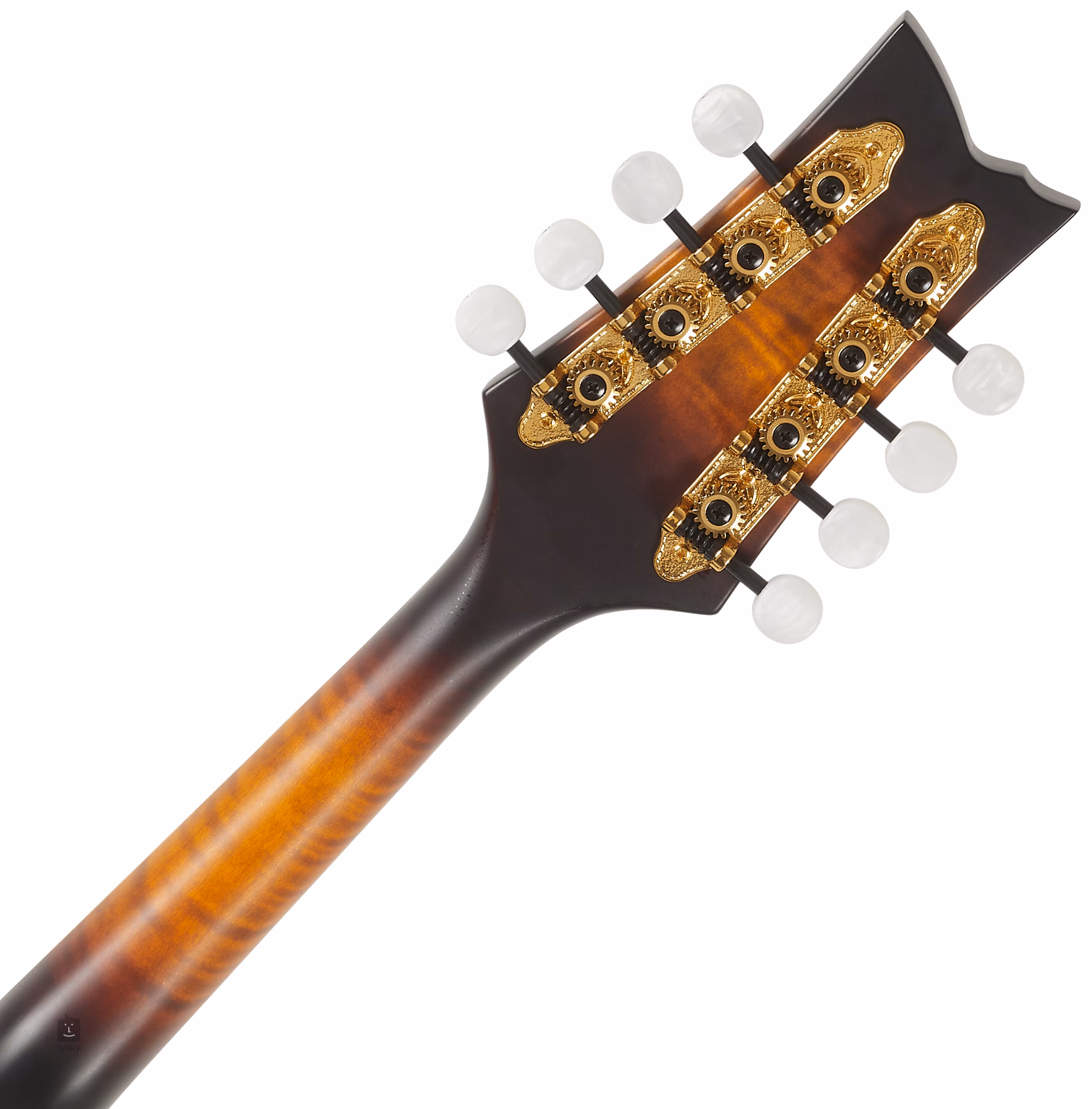 Le corps de cette mandoline F est composé d'un panneau avant en épicéa massif et d'un fond et de côtés en érable massif figuré, avec un beau grain et une finition laquée a l'huile claire. Une touche en ébene équipée de vingt-quatre frettes est collée sur un manche en érable avec une finition brillante en Tobacco Sunburst et des doubles barrettes. Les cordes sont montées sur une touche en ébene avec des mécaniques Grover plaquées or et un manche monobloc moulé sous pression en finition dorée.
