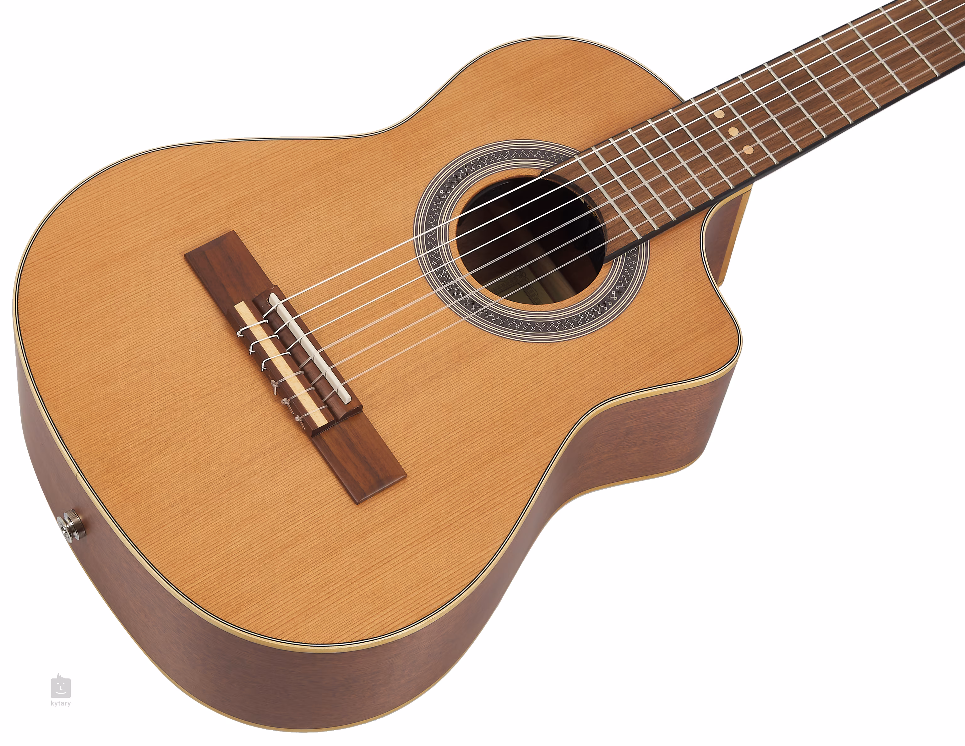 L'harmonisation de l'instrument est assurée par l'électronique active Ortega MagusGO, dont les commandes VOlume et Tone sont subtilement insérées dans la rosace de la guitare. Les cordes sont ancrées dans des mécaniques de conception traditionnelle (tête fendue) et une touche en noyer. La finition soignée est mise en valeur par la reliure double face du corps, la rosace décorative et le logo de l'entreprise sur la tête. La guitare est livrée dans un sac de transport.