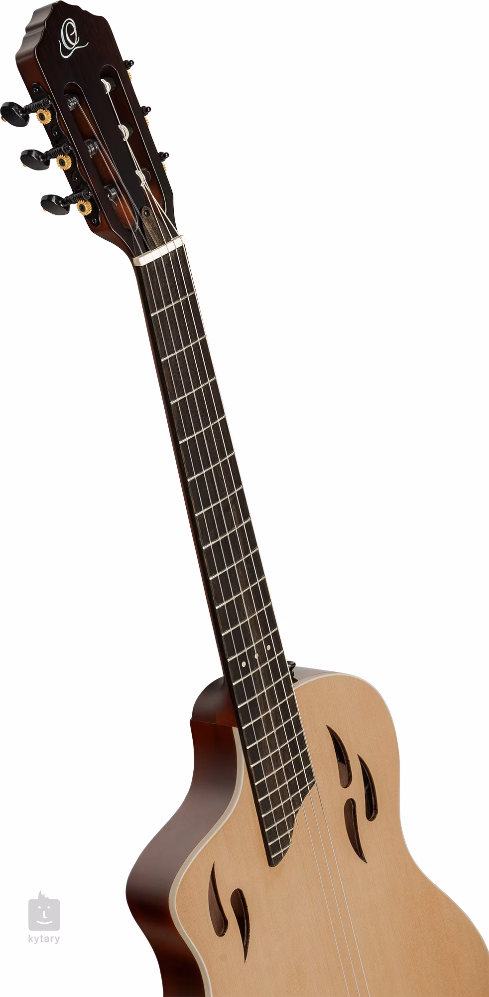 Le son est renforcé par l'électronique active Ortega MagusX/G avec un égaliseur à trois bandes et un accordeur intégré. Les cordes sont montées sur un manche en os avec des mécaniques classiques en finition noire et une touche en bois de figuier. La finition soignée est accentuée par les filets blancs du corps et de la touche, ainsi que par les points de positionnement perlés sur la douzième frette.