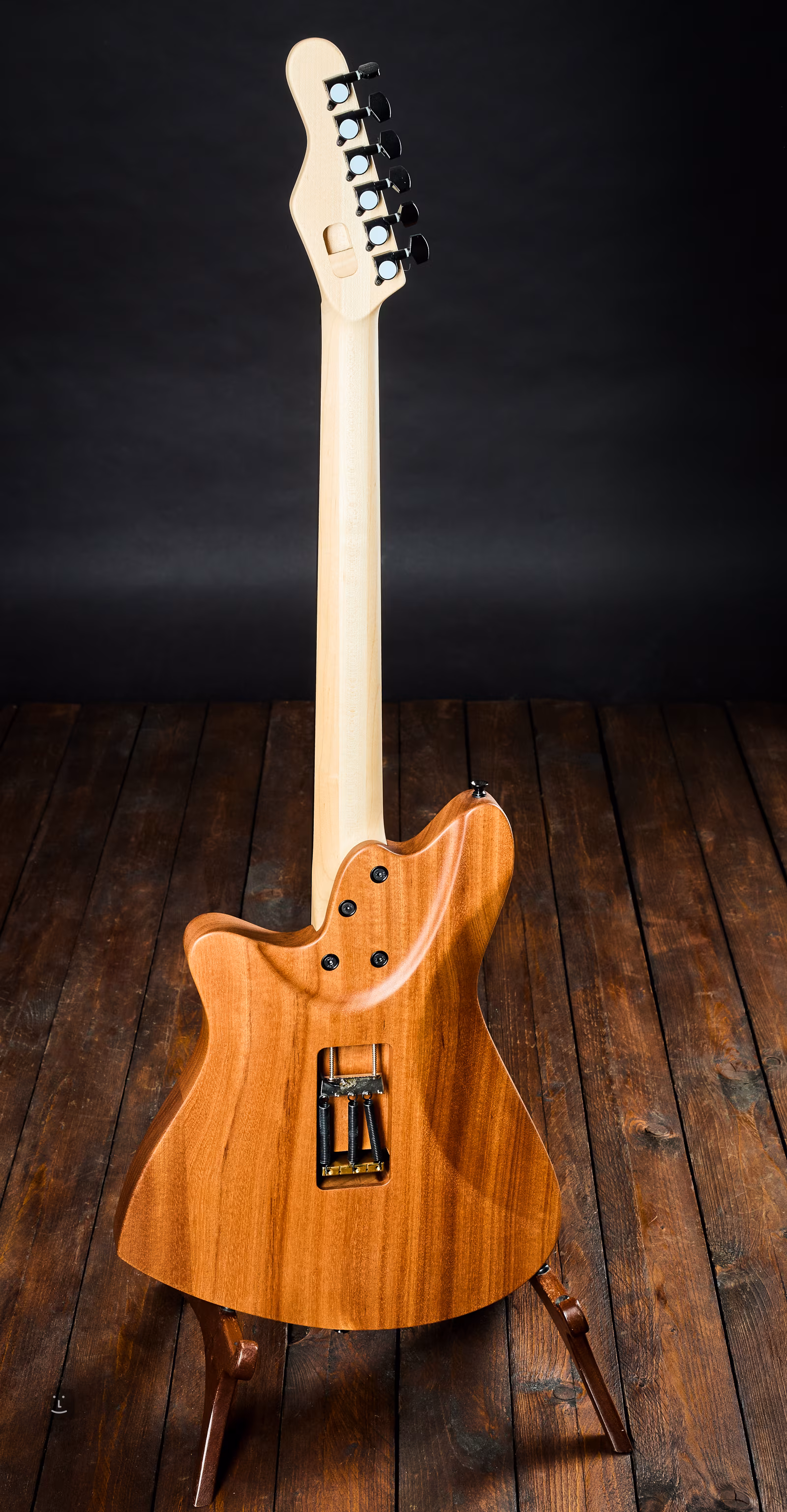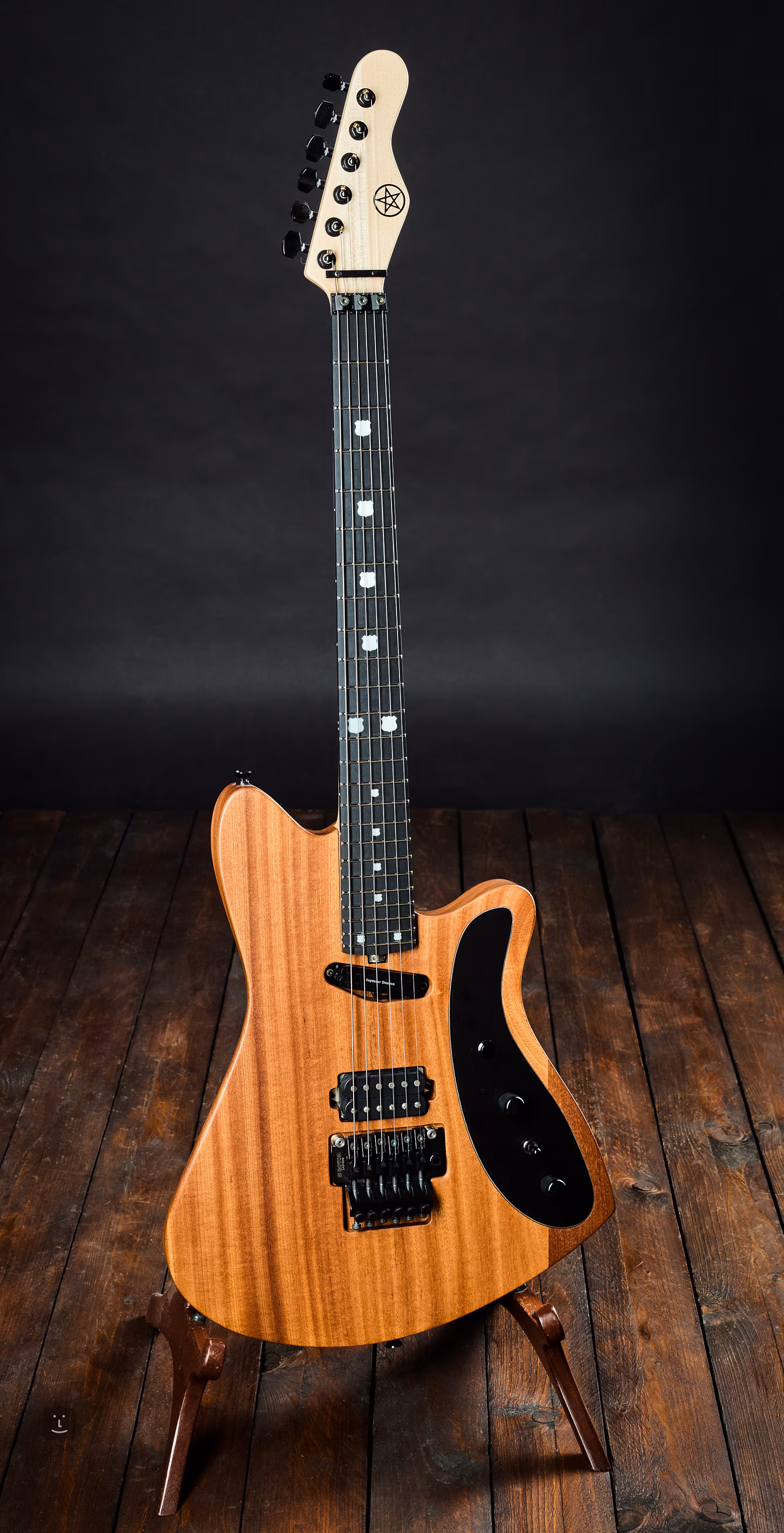 La Floyd Mahogany possède un corps en acajou, un manche en érable à trois plis et une touche en richlite. L'électronique est passive, avec un interrupteur à bascule à trois positions, un volume, une ouverture et un kill-switch. Le calibre est de 25,5". Le trémolo Gotoh est à double retour avec verrous.