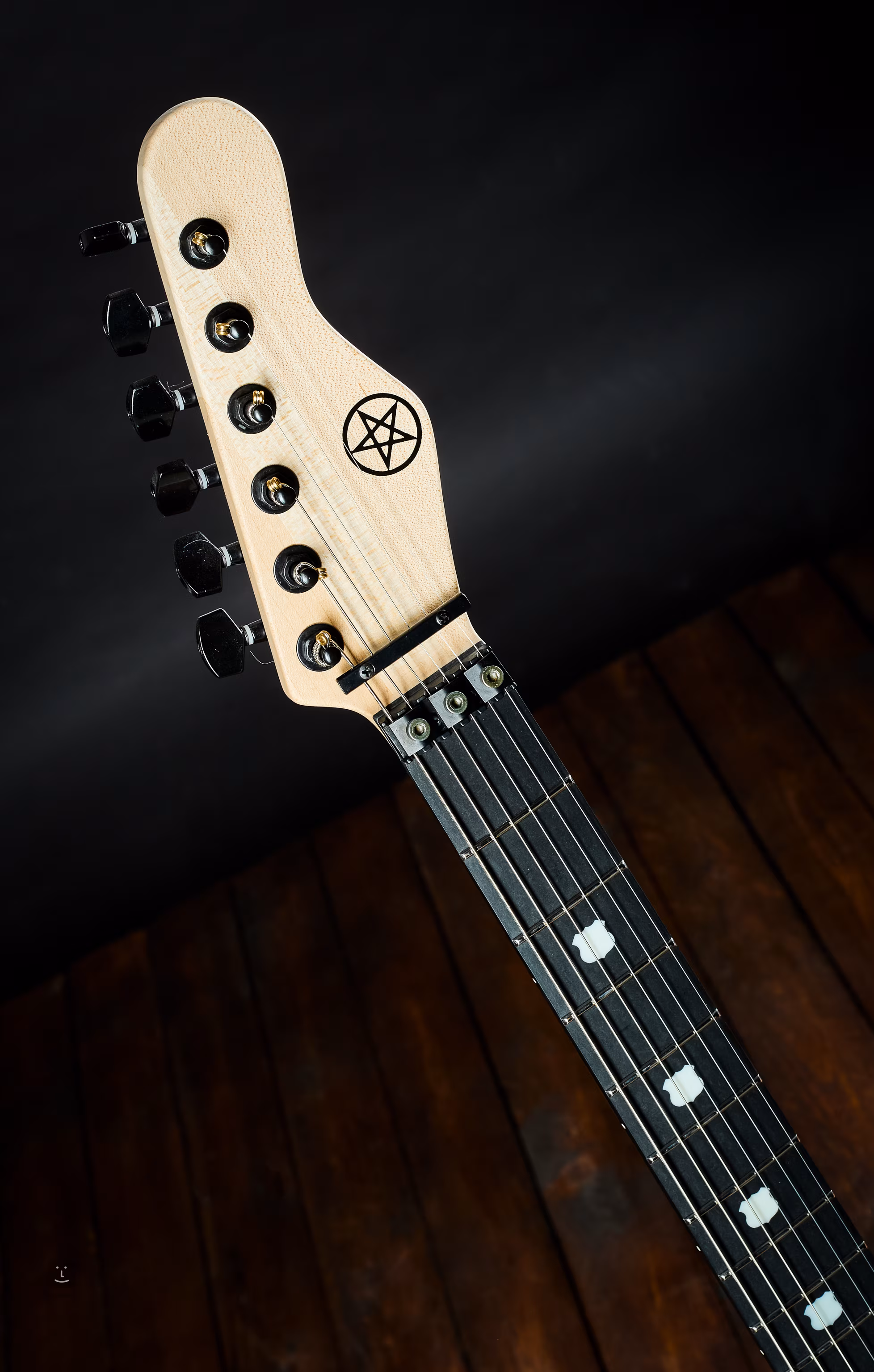 Les guitares Pentagram présentent plusieurs caractéristiques inhabituelles. Qu'il s'agisse d'un support spécial pour la tige d'accordage à l'arrière de la tête, d'un pickguard sophistiqué qui tient sur des aimants sans l'aide de vis, d'une roue de vis de contreventement réglable et facilement accessible, de vis industrielles dans le joint du manche qui ne vont pas dans le bois, mais dans les fraises montées sur le manche, de "bouts de fret aveugles" qui sont arrondis et cachés dans la touche, d'un manche multi-plis pour plus de stabilité ou d'une quincaillerie de qualité.