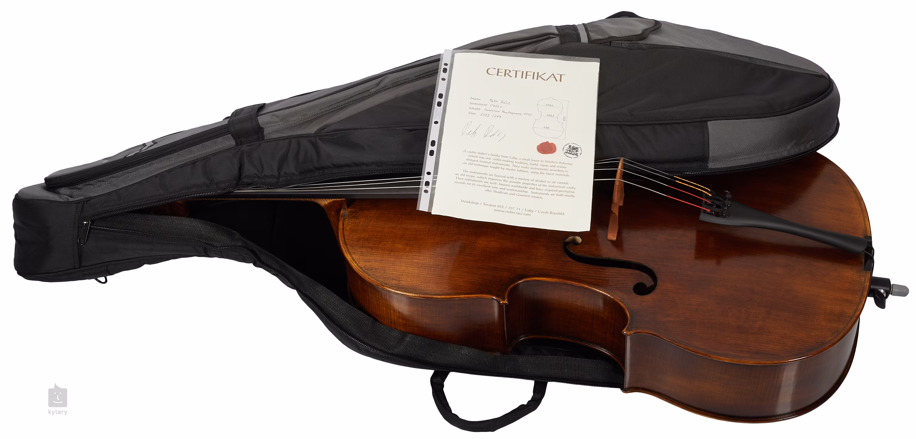 Les cordes A et D proviennent du jeu Larsen Solist, les cordes G et C sont des Thomastik Spirocore Thungsten. La combinaison des cordes utilisées renforce encore l'unicité sonore de l'instrument. L'instrument est accordé par le constructeur lui-meme.