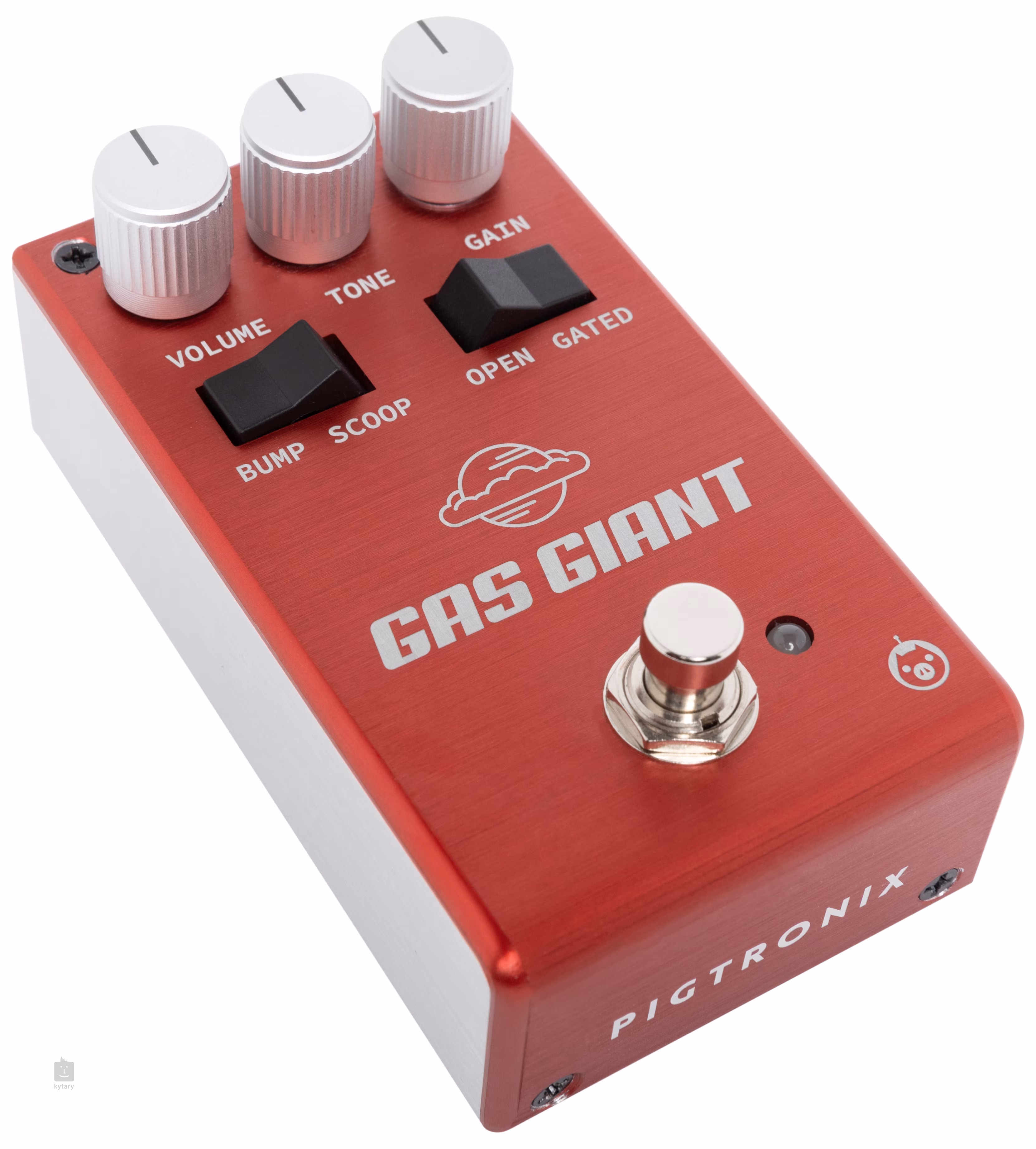 La Gas Giant de Pigtronix est une pédale de fuzz analogique à haut gain qui offre une incroyable variabilité sonore et des options de personnalisation du son. Elle s'inspire des pédales fuzz à transistors emblématiques des années 1970, mais avec des améliorations modernes pour un potentiel sonore maximal. La Gas Giant utilise des transistors soigneusement sélectionnés et appariés pour s'assurer que le "sweet spot" parfait est facilement atteint, ce qui est souvent difficile à trouver dans les pédales vintage.
