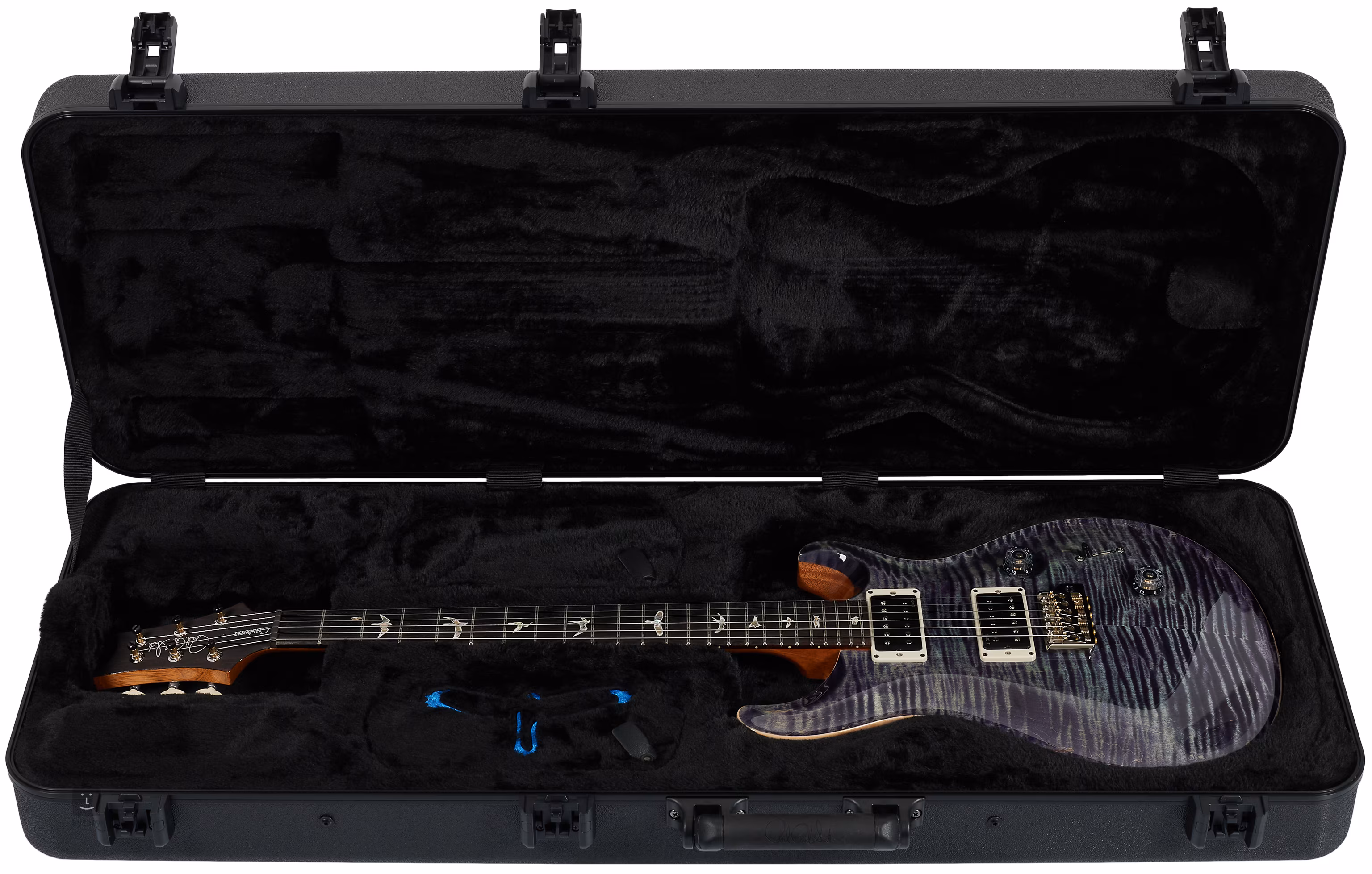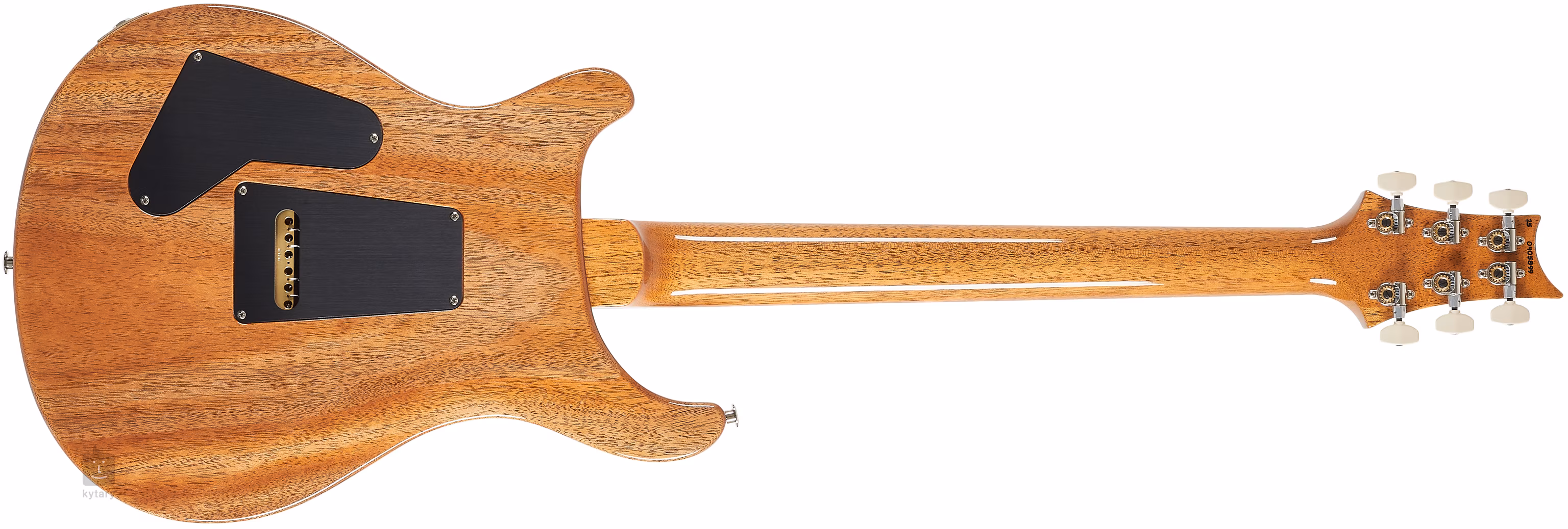Le modèle Custom 24 Aurora Borealis attire l'attention au premier coup d'œil grâce à la combinaison d'un corps ergonomique en acajou avec le double cutaway typique de PRS et d'une table d'harmonie en érable figuré avec un grain de bois froid. Un manche monobloc en acajou au profil Pattern Thin est collé à une touche en palissandre dotée de vingt-quatre frettes. L'orientation sur la touche est facilitée par les marqueurs de position PRS en forme de silhouettes d'oiseaux en nacre.