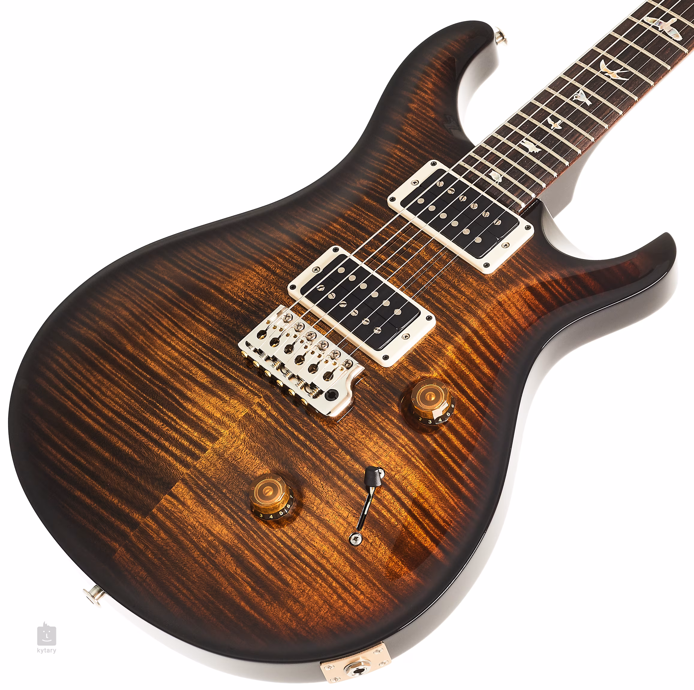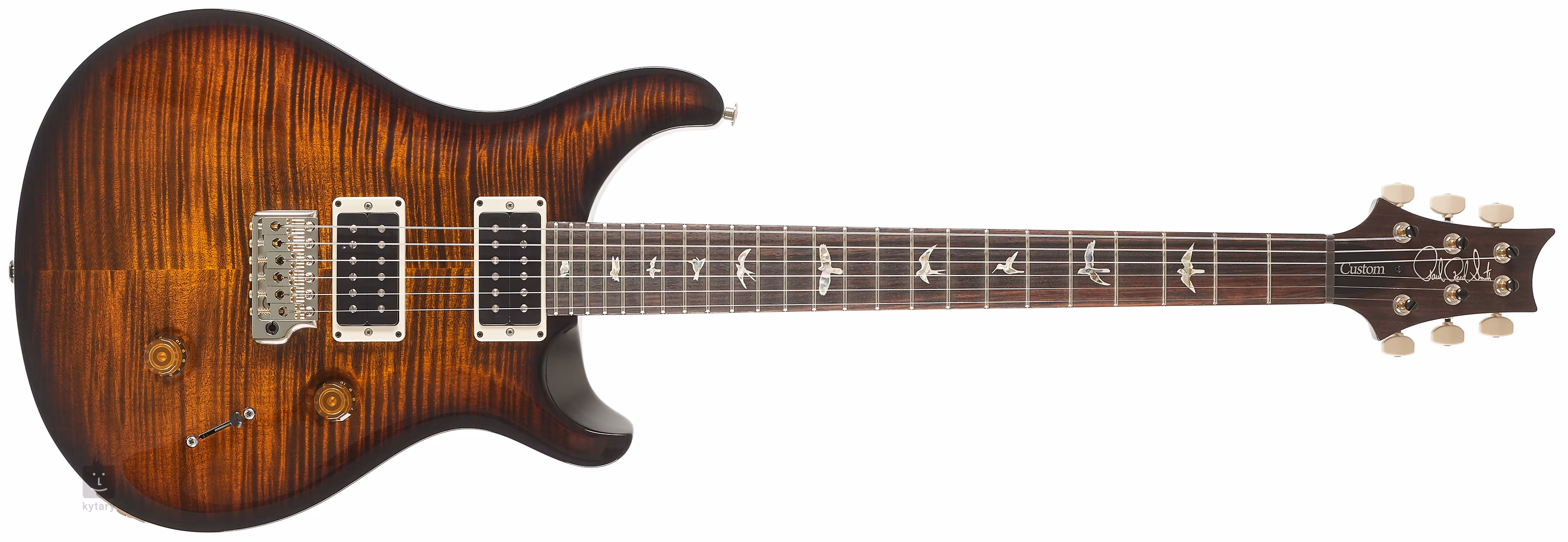 Le modèle Custom 24 Black Gold Wraparound Burst attire l'attention au premier coup d'œil grâce à la combinaison d'un corps ergonomique en acajou avec le double cutaway typique de PRS et d'une table d'harmonie en érable figuré avec un grain de bois frais. Un manche monobloc en acajou au profil Pattern Thin est collé à une touche en palissandre dotée de 24 frettes. L'orientation sur la touche est facilitée par les marqueurs de position PRS en forme de silhouettes d'oiseaux en nacre.