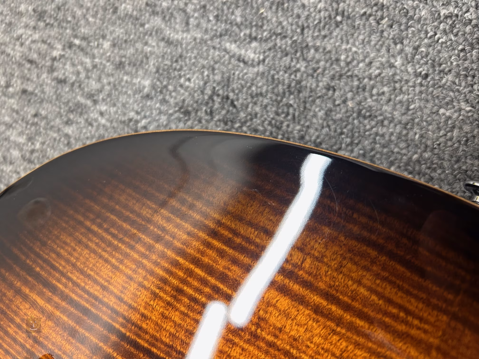 Le corps en acajou de la guitare est orné d'une table en érable et d'un placage spectaculaire en érable flammé. Une touche en palissandre avec vingt-quatre frettes est collée sur le manche en érable à profil large et fin. Des repères de position sous forme de silhouettes d'oiseaux en nacre facilitent l'orientation sur la surface de la touche. Une paire de micros humbuckers signés par l'entreprise confère à la guitare un son clair avec des médiums percutants. Son caractère peut être ajusté à l'aide des potentiomètres de volume et de l'obturateur de tonalité, qui dispose d'une fonction push/pull (coil-split), permettant à la guitare de vous offrir le son pur des micros à simple bobinage. Un commutateur à trois positions permet également de choisir entre les différents micros ou de brancher les deux.