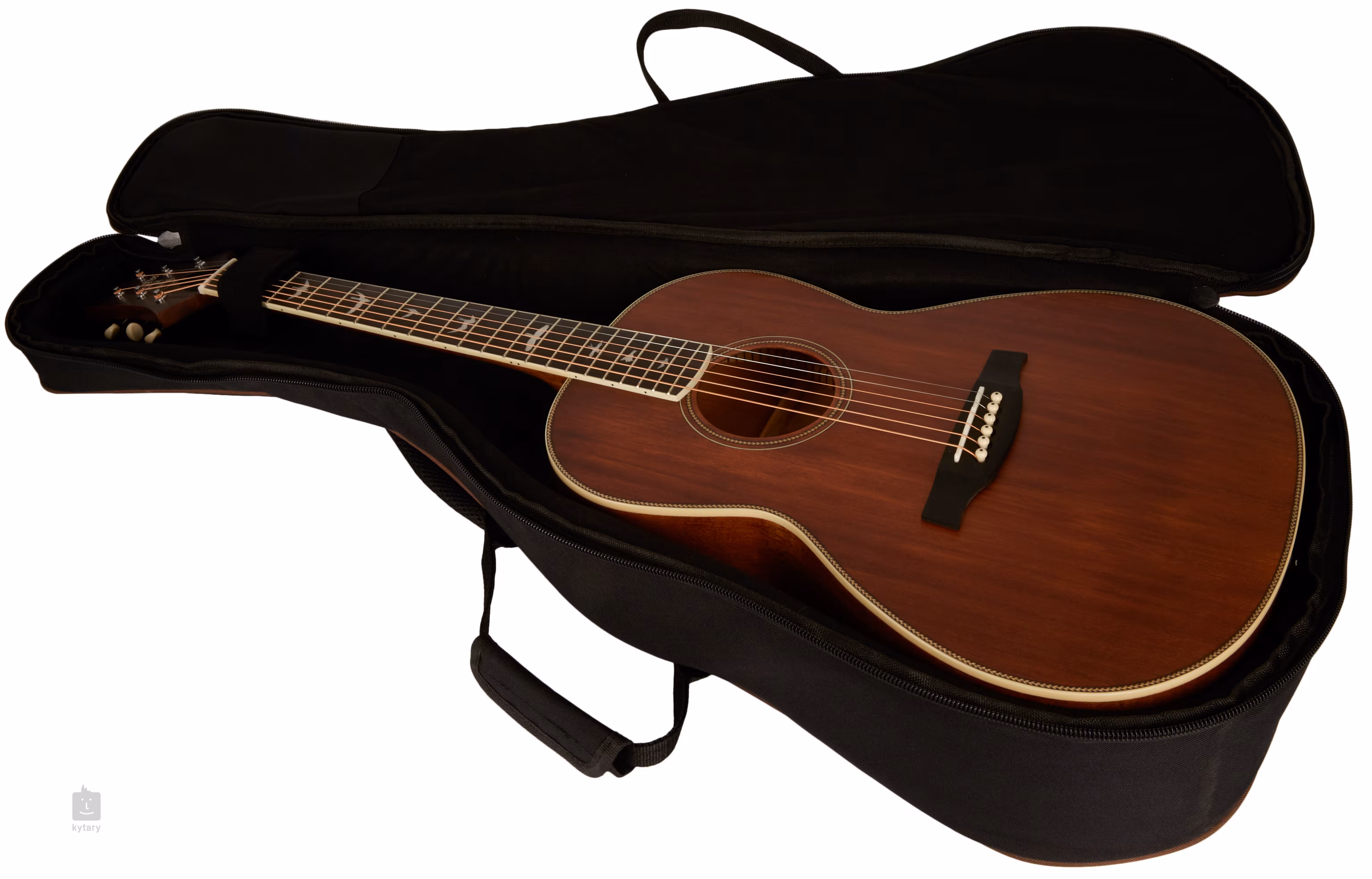 Le corps est entièrement fabriqué en acajou - façade en acajou massif, dos et éclisses en acajou massif. Les qualités acoustiques de l'instrument sont accentuées par les nervures hybrides X/classiques, qui maintiennent le dos et les éclisses fermement en place tout en permettant à la table d'harmonie de vibrer librement. La sonorité chaude traditionnelle des guitares Parlor, avec un profil plus prononcé dans les médiums, permet également d'obtenir un volume sonore décent.