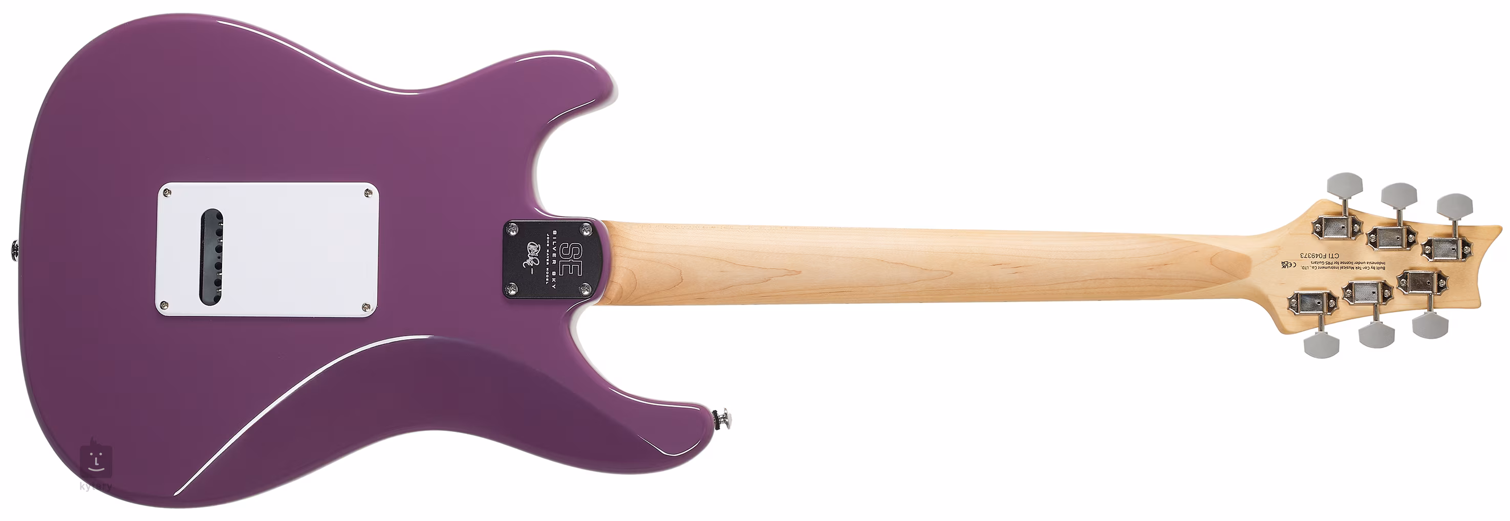 Le corps de la guitare PRS SE Silver Sky Maple Summit Purple est en peuplier. Le manche en érable vissé présente le cutaway/profil original de la 635JM, la surface de la touche en érable étant divisée par vingt-deux frettes et des repères de position en forme de silhouettes d'oiseaux.