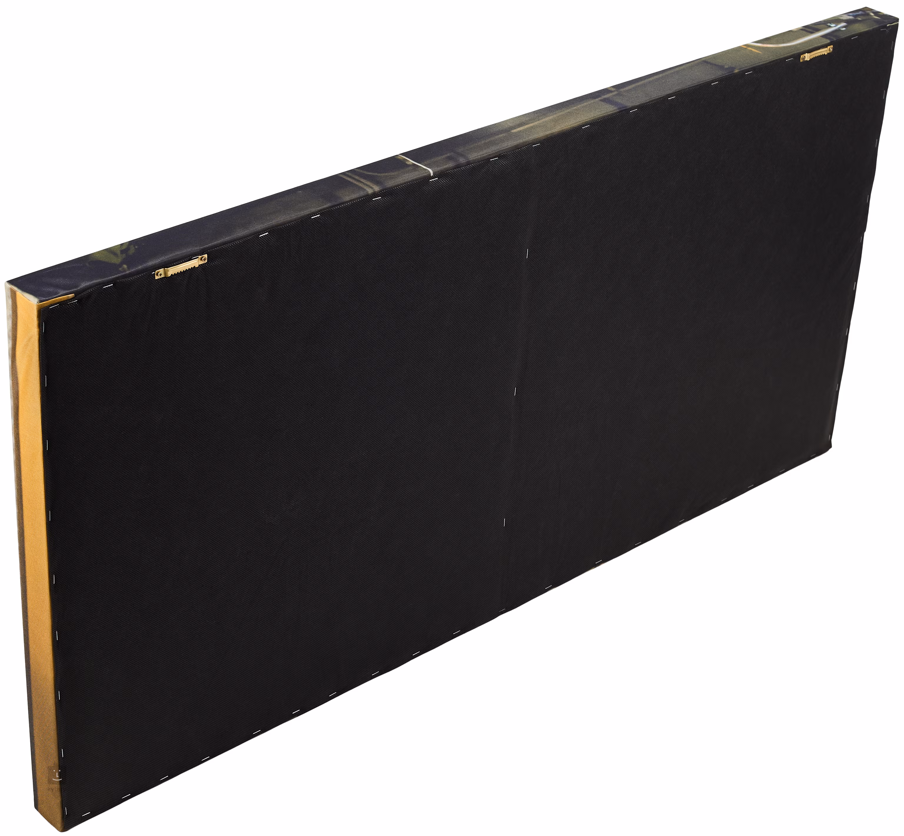 Un autre avantage réside dans le design et l'esthétique. Le cadre, fabriqué en contreplaqué de bouleau de 18 mm d'épaisseur (EN 636-2, S, E1), a une finition miel et l'ensemble du panneau est recouvert d'un tissu de coton (210 - 350 g/m2, 80 %CO + 20 %PES). Ce beau panneau est ainsi beaucoup plus esthétique que les pyramides de mousse qui accrochent la poussière.