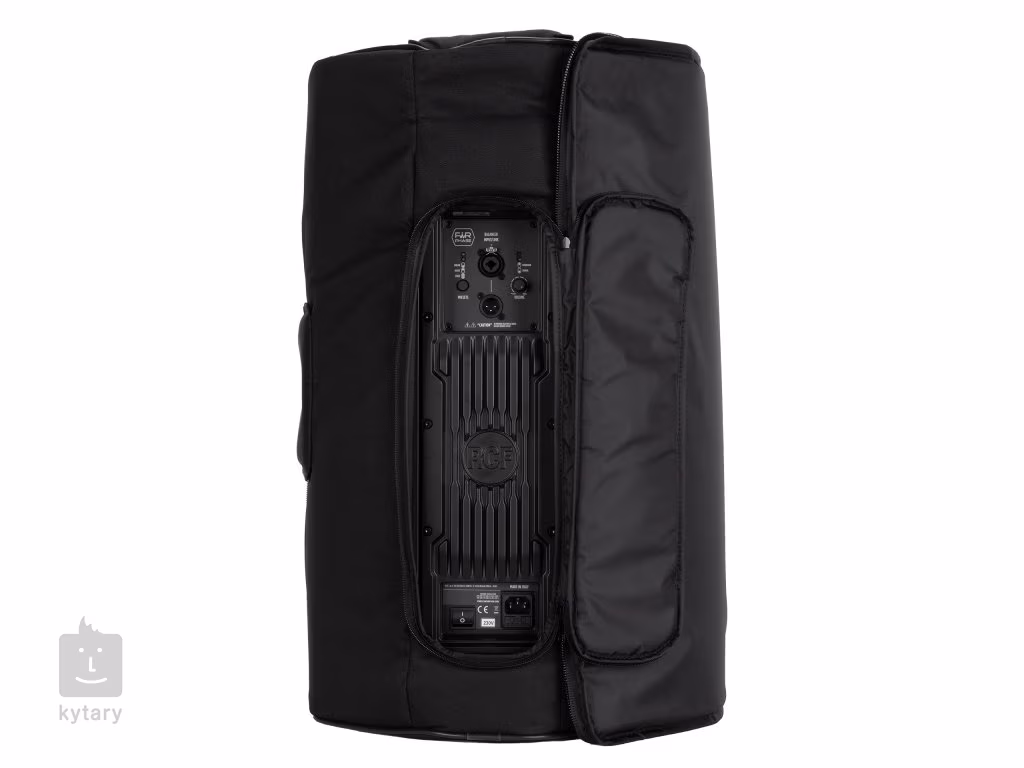 Une fermeture à glissière avec fermeture velcro assure une fermeture sûre et un accès facile à l'enceinte. L'avant de l'étui peut être ouvert et sécurisé par du velcro, ce qui permet d'accéder aux commandes et aux connecteurs même lorsque l'étui est en place. L'étui comporte également des trous pour les poignées, un panneau arrière avec des connecteurs et un capuchon pour le montage sur un support.