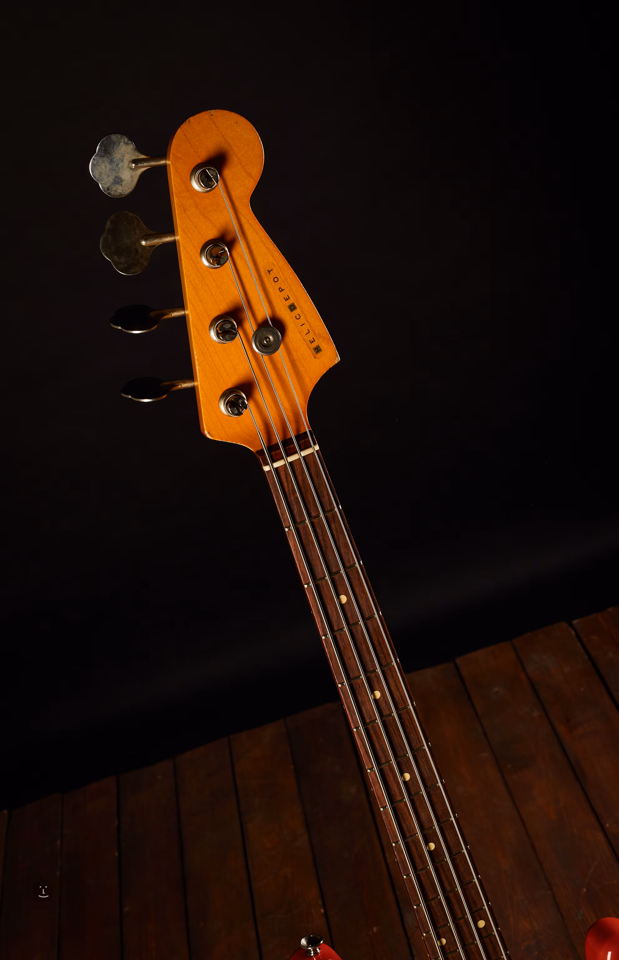 Précision de l'échelle courte avec un corps en pin de Sibérie. Il s'agit d'un instrument de maître distinctif en Fiesta Red. Un instrument avec une histoire.