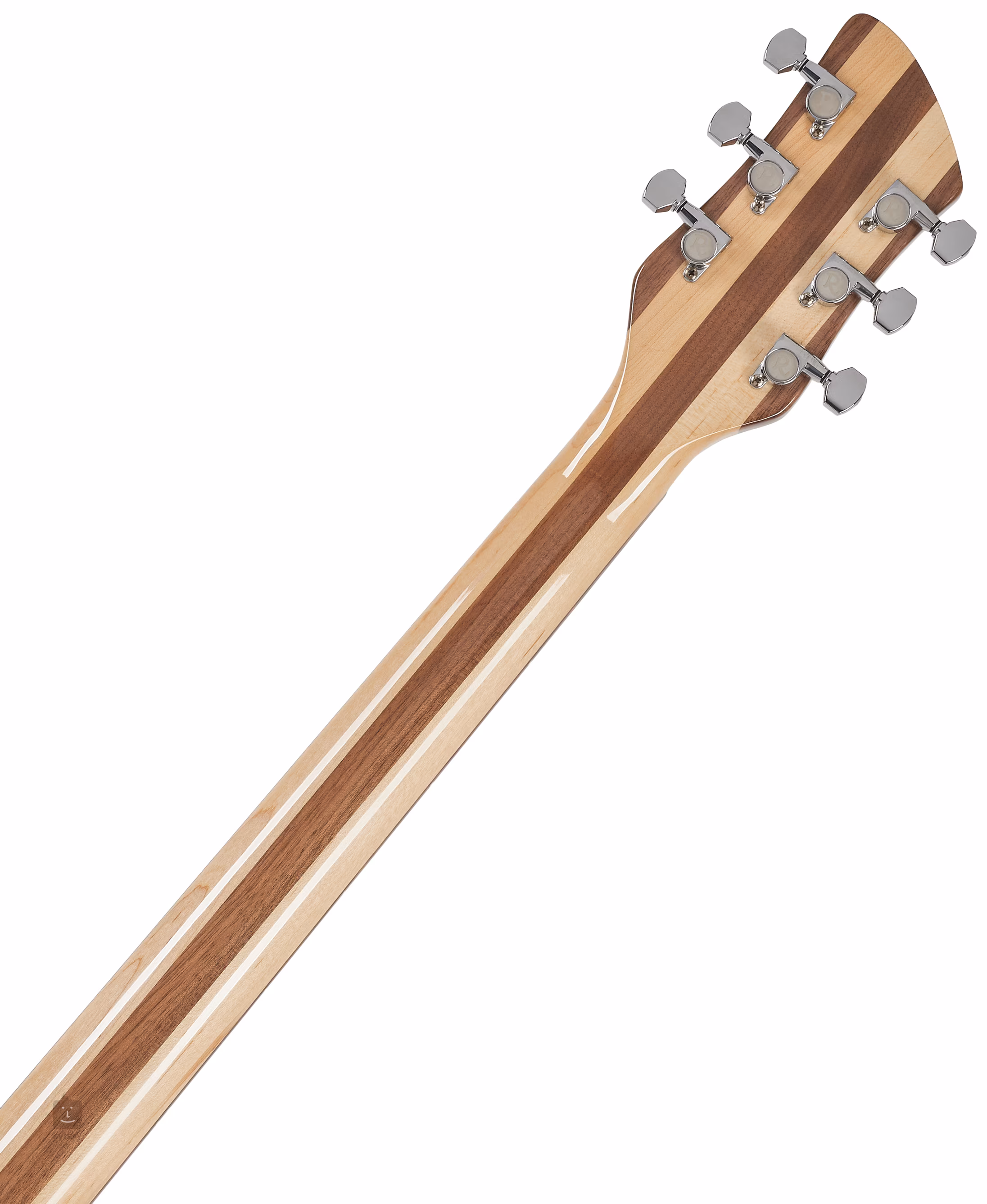 Le corps semi-creux en érable constitue la base du son clair de l'instrument. Une touche en palissandre de 21 frettes est collée sur le manche en érable. Les deux micros à simple bobinage "hi-gain" confèrent à la guitare le son classique "jangly" de Rickenbacker, ainsi qu'un overdrive plus chaud si la scie a besoin d'être poussée. Ajustez le caractère du son à l'aide des commandes de volume des micros, de l'obturateur de tonalité et de la commande Blend. Vous pouvez passer d'un micro à l'autre à l'aide du commutateur standard à trois positions.