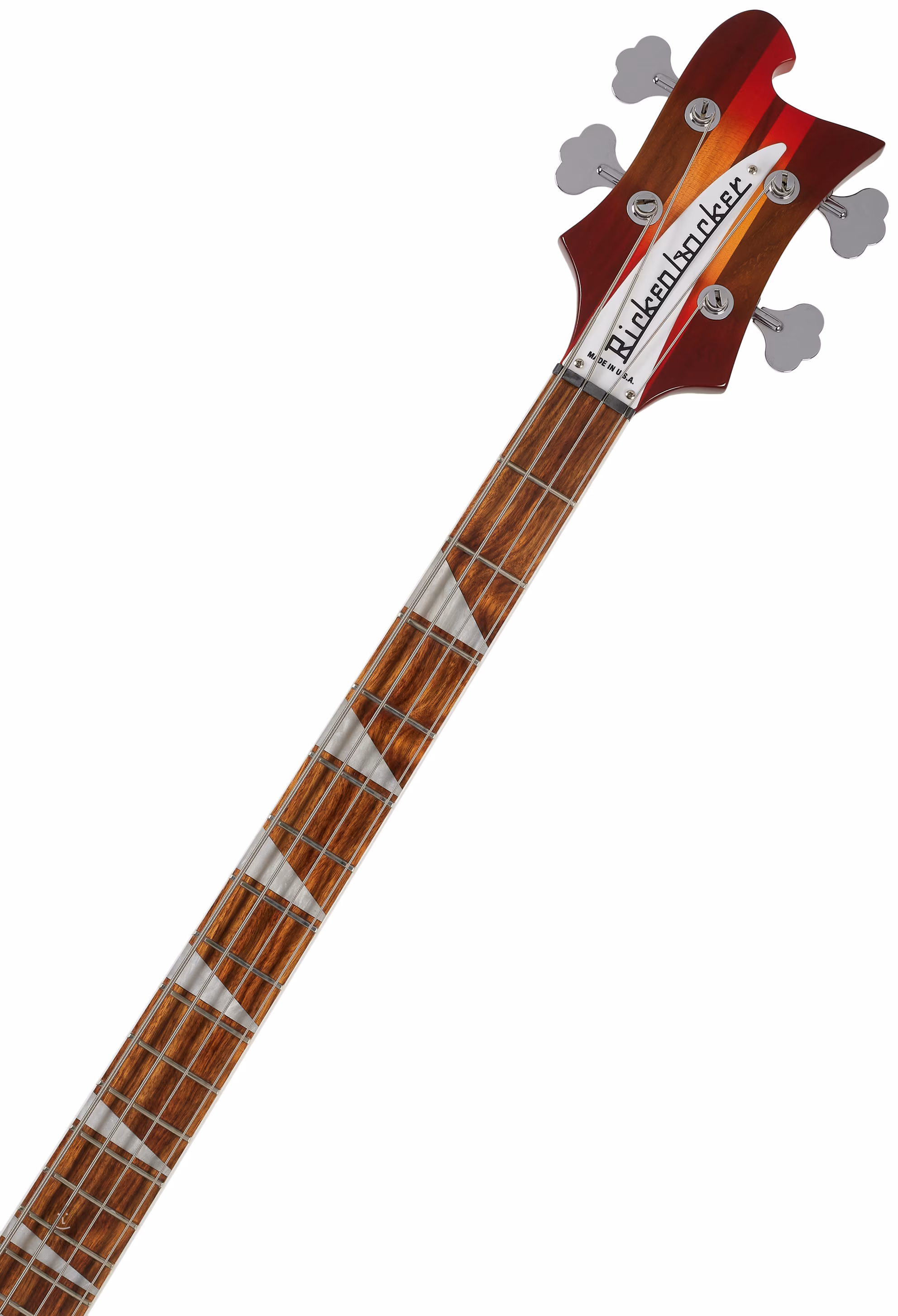 Une paire de micros à simple bobinage peut être contrôlée par des commandes passives de volume et de tonalité pour chaque micro séparément, avec une variabilité sonore suffisante grâce à un commutateur à bascule à trois positions. Des mécaniques Schaller Deluxe de première qualité ont été utilisées, et la tête chromée ainsi que le truss rod proviennent directement de l'atelier Rickenbacker. La paire de sorties est également intéressante : le jack mono standard est complété par une sortie stéréo qui peut être utilisée pour obtenir un large éventail de possibilités sonores. La basse a été fabriquée à la main aux Etats-Unis et un étui rigide est également inclus.