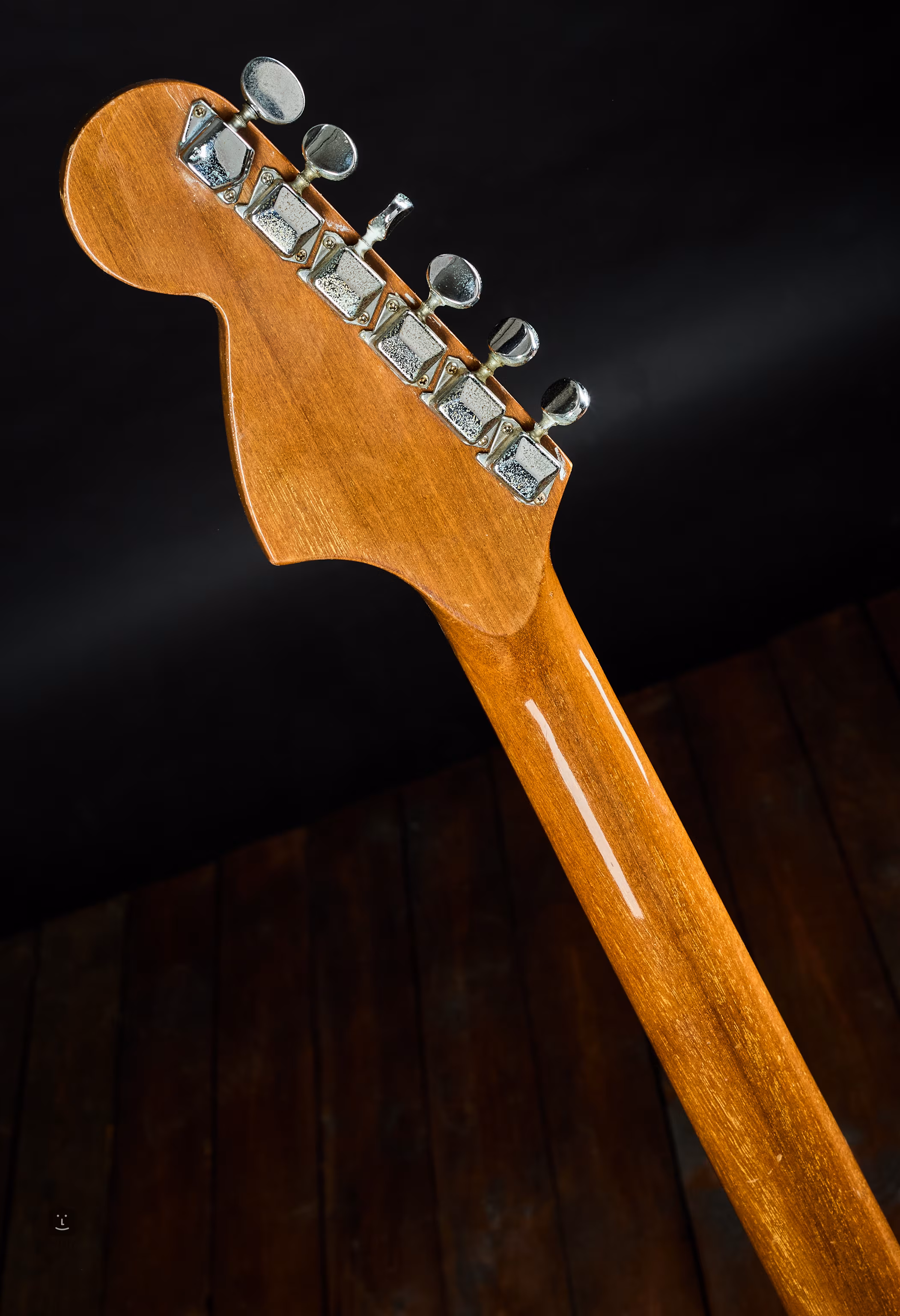 Tous les éléments de l'instrument sont d'origine. Le corps est en acajou laminé. Les micros sont des singles classiques, reliés à un commutateur à trois positions.