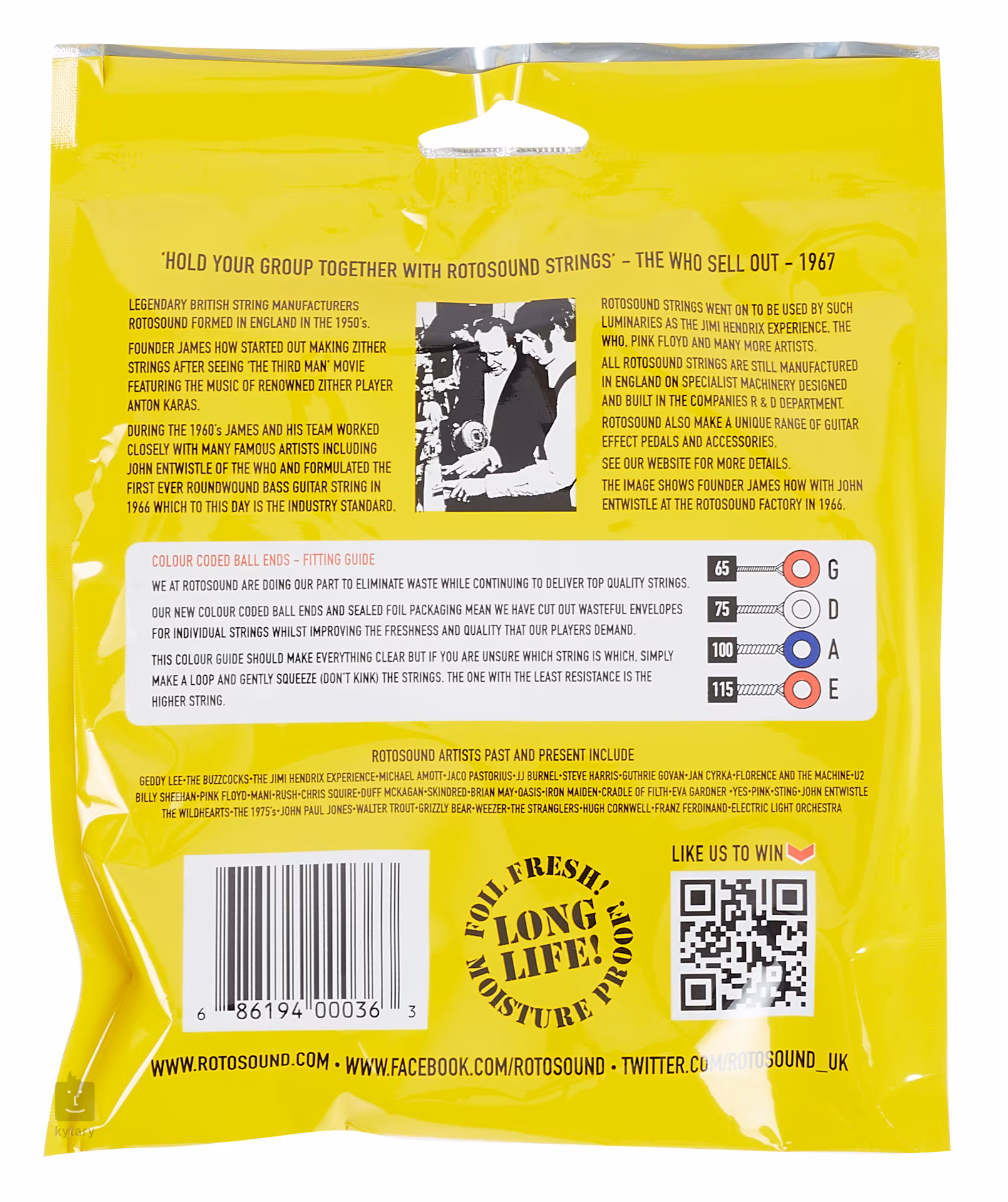 De nombreuses icônes musicales ont fait confiance aux cordes Rotosound pour leur excellente sonorité, notamment Noel Redding du groupe de Jimi Hendrix, Duff McKagan de Guns N' Roses et John Paul Jones de Led Zeppelin. Roger Waters, de Pink Floyd, les a utilisées sur le légendaire The Dark Side of the Moon et vous pouvez également les entendre sur Nevermind de Nirvana.