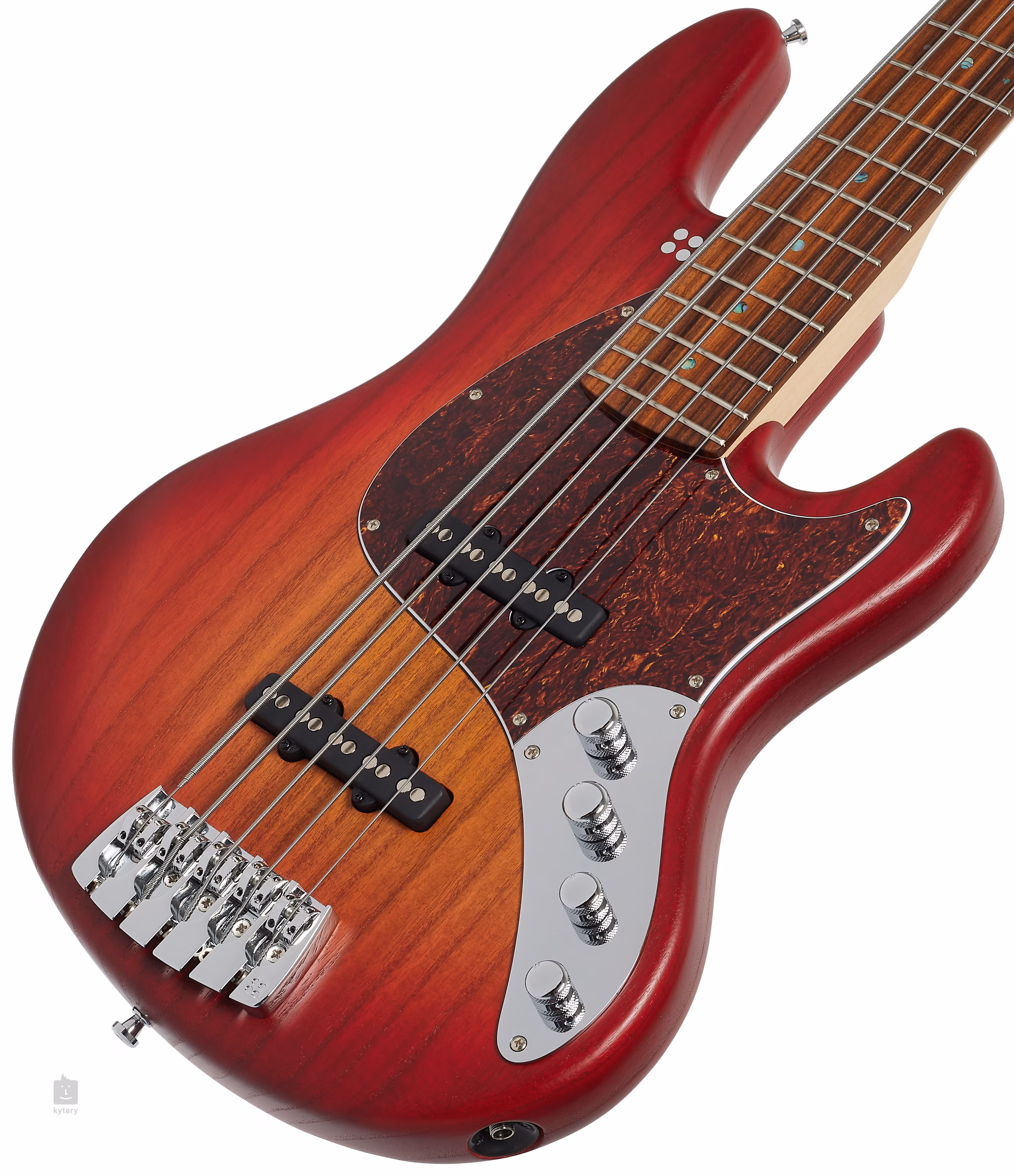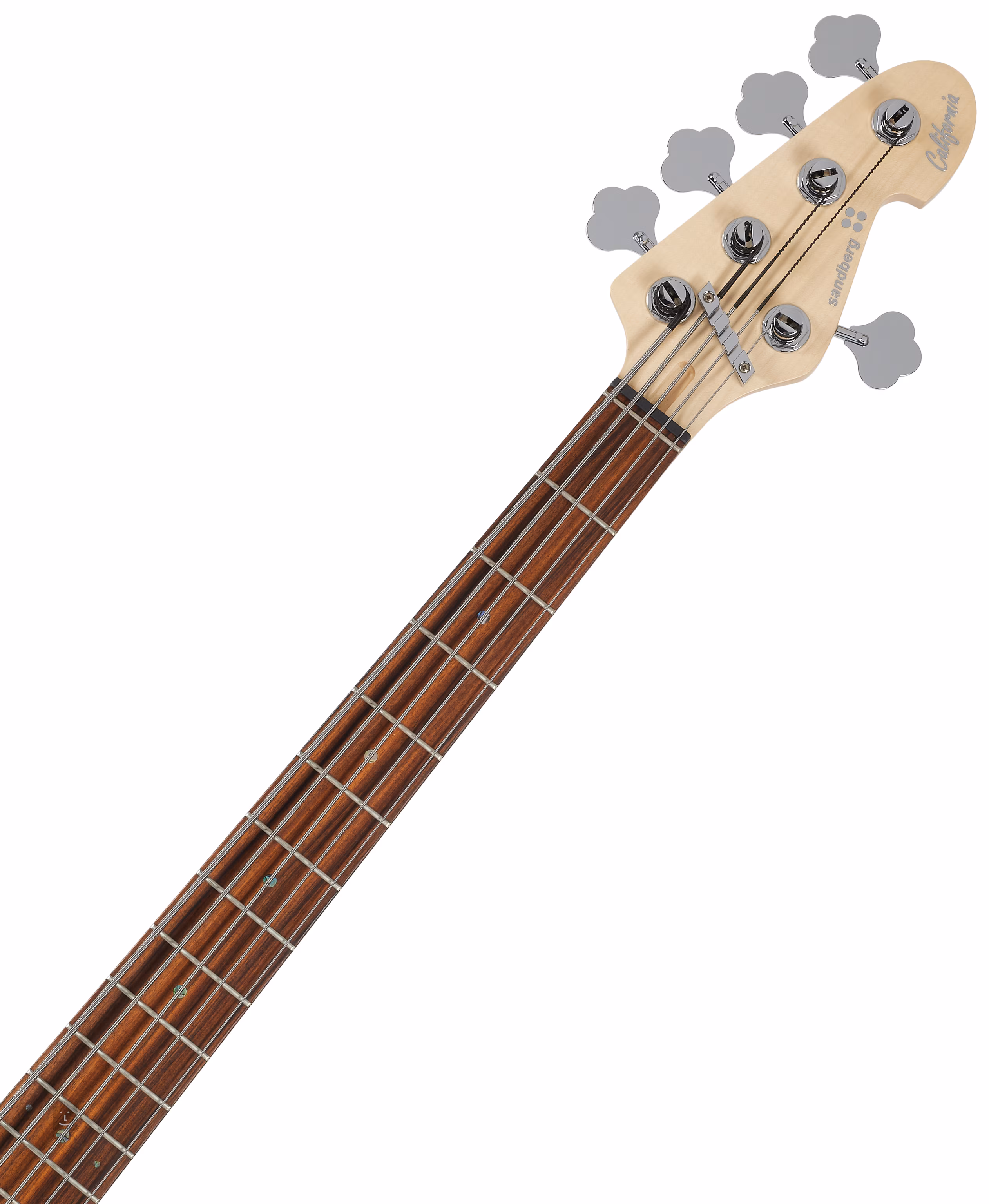 Le corps de la basse à cinq cordes Sandberg California TT 5 SL PF Matte Cherry Sunburst est en bois de pavlovnia. Le manche en érable canadien est collé à une touche en pau ferro avec 22 frettes. Fixé au corps par six vis, le manche est maintenu fermement dans une position parfaitement précise.