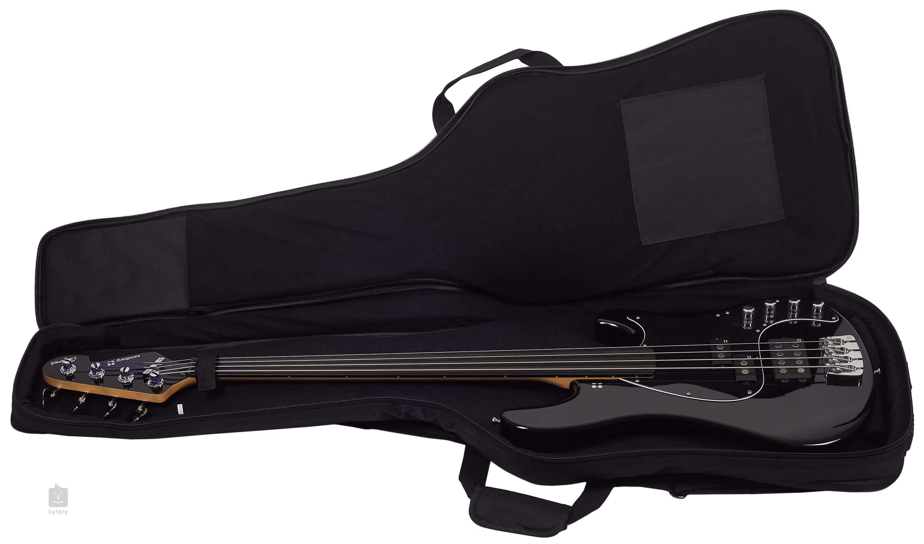 La guitare est équipée d'un micro humbucker et d'un micro simple bobinage, à savoir les modèles Sandberg Powerhumbucker et Splitcoil. Ceux-ci offrent à la fois le son "PB" standard et un petit quelque chose en plus, grâce au micro humbucker. La sauterelle est typiquement solide, avec des pierres séparées et un espacement des cordes réglable (18,5-20 mm), fabriqué par Sandberg. De l'autre côté de la guitare se trouvent les mécaniques Sandberg. Même l'accastillage n'est pas en reste par rapport au design non conventionnel de cet instrument, il est chromé.