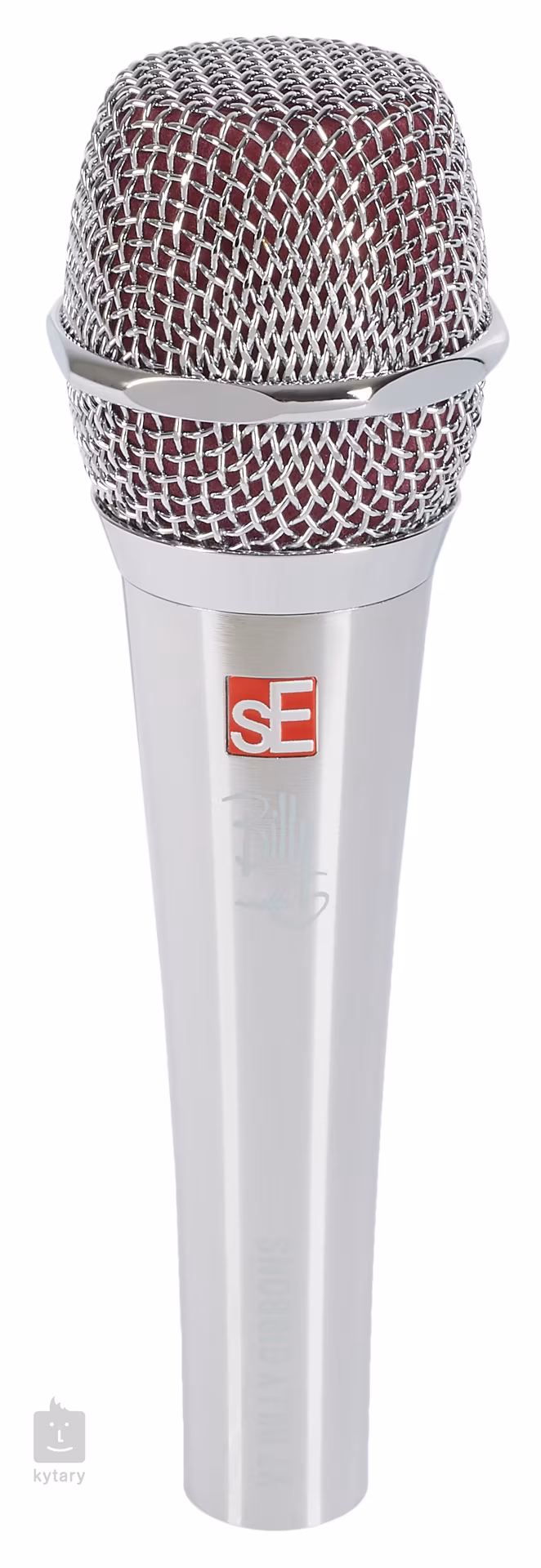 Le Microphone Signature V7 de Bill F. Gibbons de ZZ Top de SE Electronics offre une finition chrome poli unique avec une bonnette violette et la signature du musicien charismatique.
