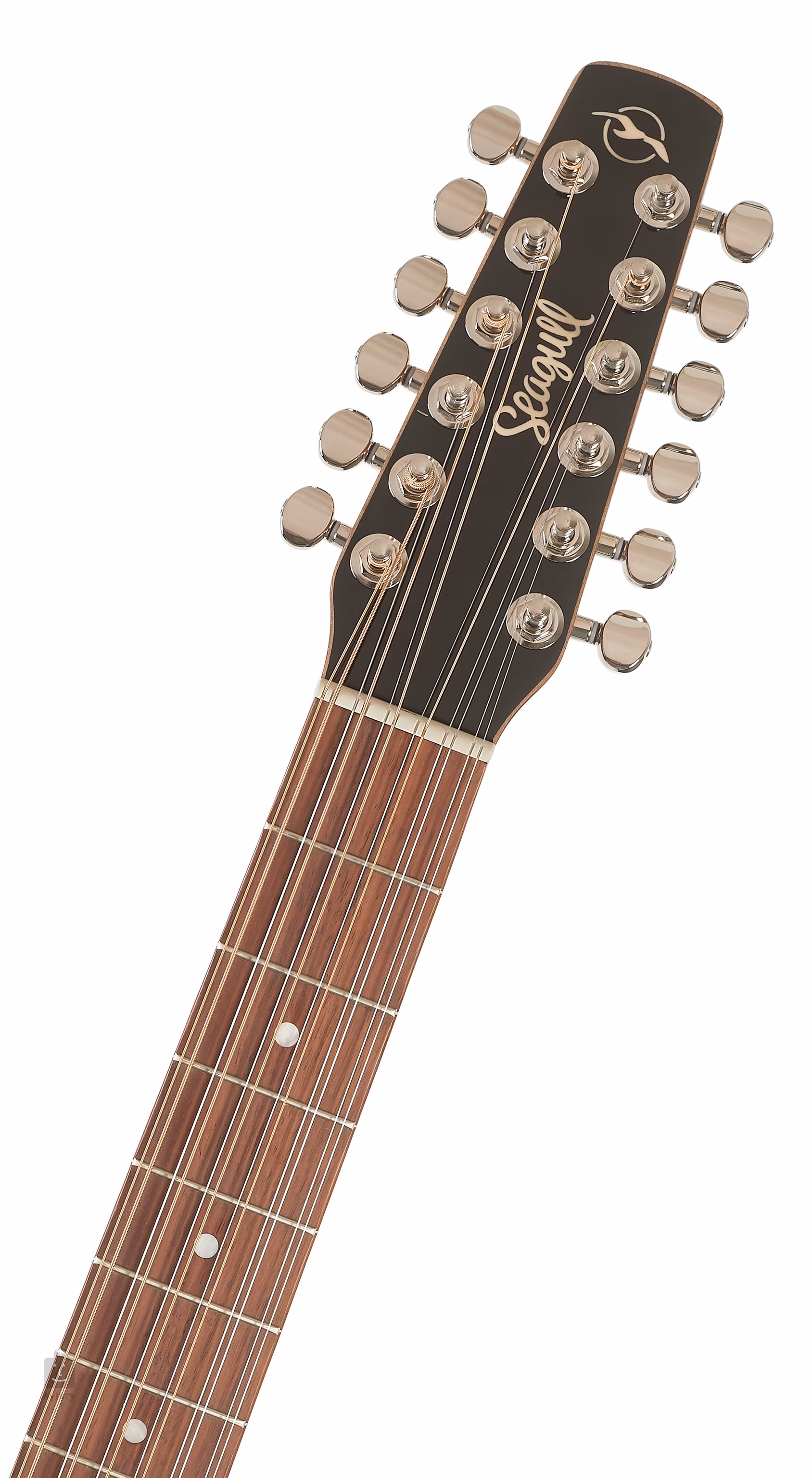 Une touche en palissandre de 21 frettes est collée sur le manche en érable. Une découpe inférieure du corps permet de jouer plus facilement sur les positions supérieures de la touche. Les cordes sont montées sur des mécaniques chromées et une touche en palissandre. La belle finition est accentuée par la rosace à chevrons, la ligature du corps sur deux faces et le logo de la société sur la tête de manche typique de Seagull.