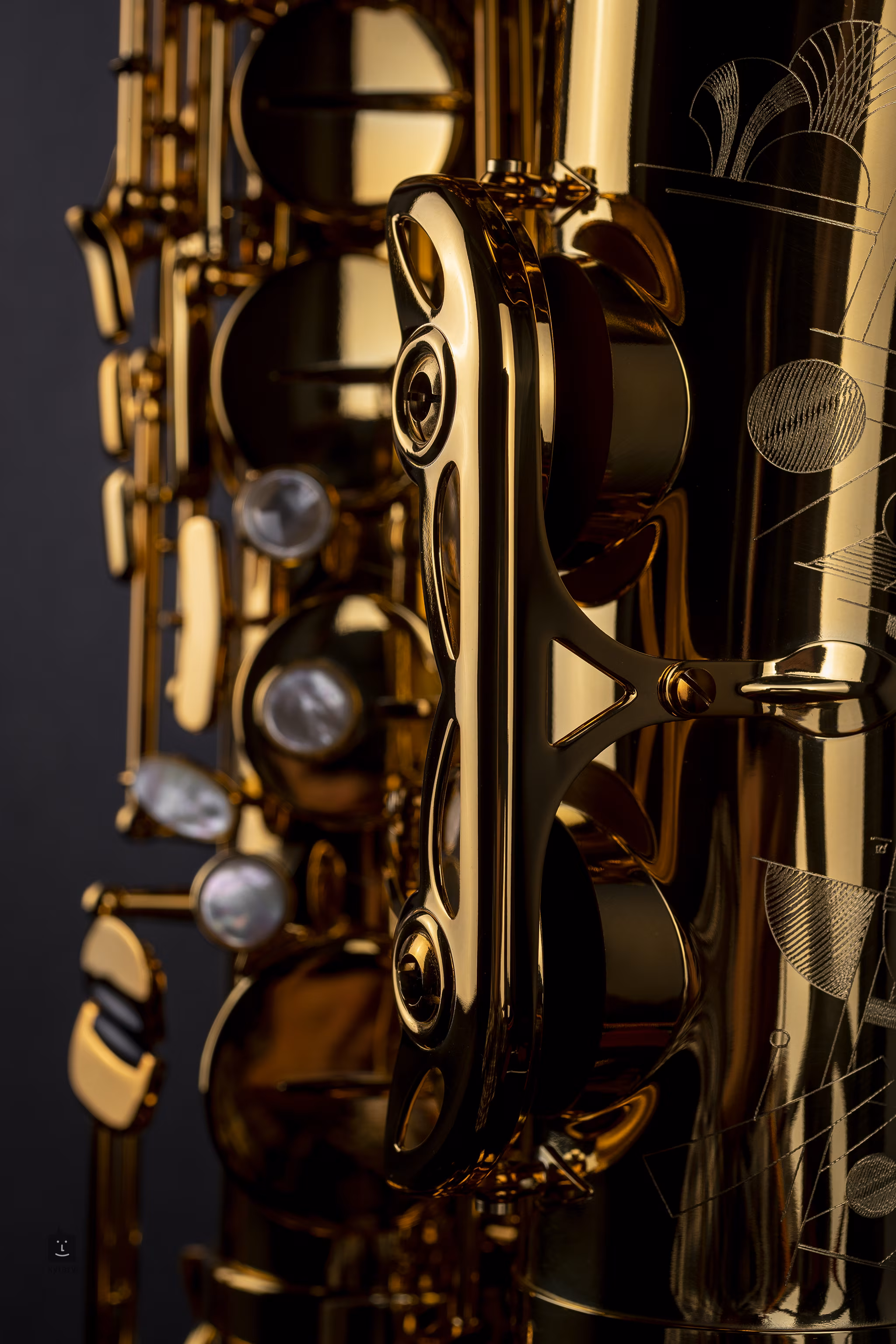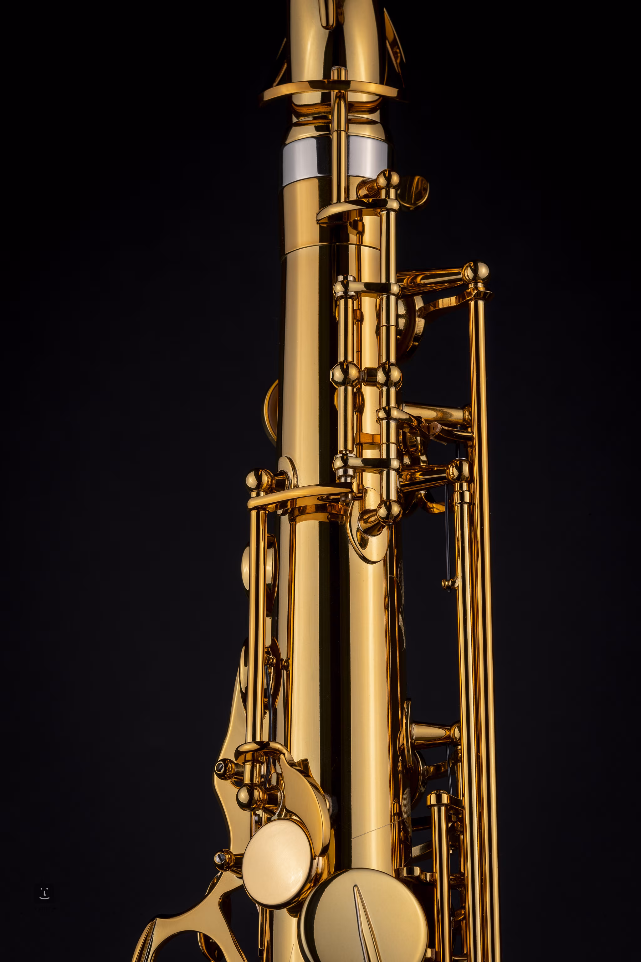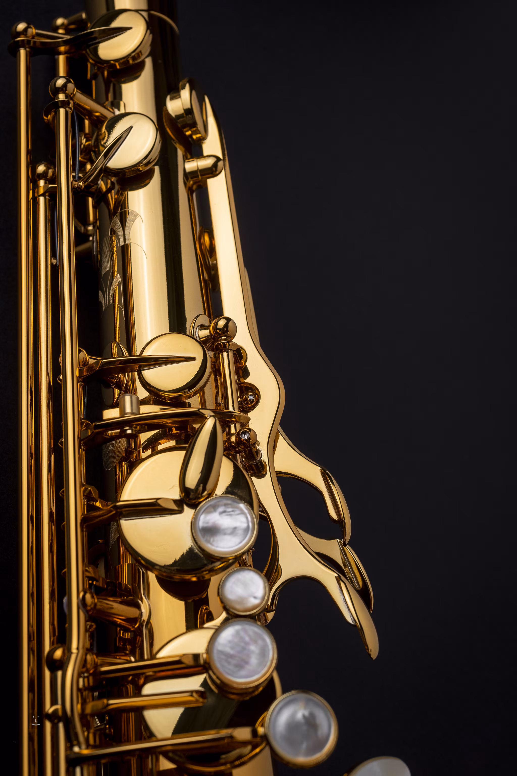 Le saxophone alto ténor Signature, laqué, offre une flexibilité exceptionnelle dans tous les registres, ainsi qu'un son puissant et une projection vraiment impressionnante grâce à l'augmentation du diamètre de l'embouchure. Le saxophone est également doté d'une nouvelle perce d'anche et de manche pour une meilleure précision d'accord, d'un manche avec fixation concentrique en trois points et d'un anneau de renforcement en pakfong, de languettes d'octave avec une action plus douce et donc moins de bruits d'accompagnement non désirés, des repose-pouces plaqués or, des languettes en nacre, des touches en cuir avec résonateurs en métal, des gravures exclusives Signature et une laque Signature plus foncée.