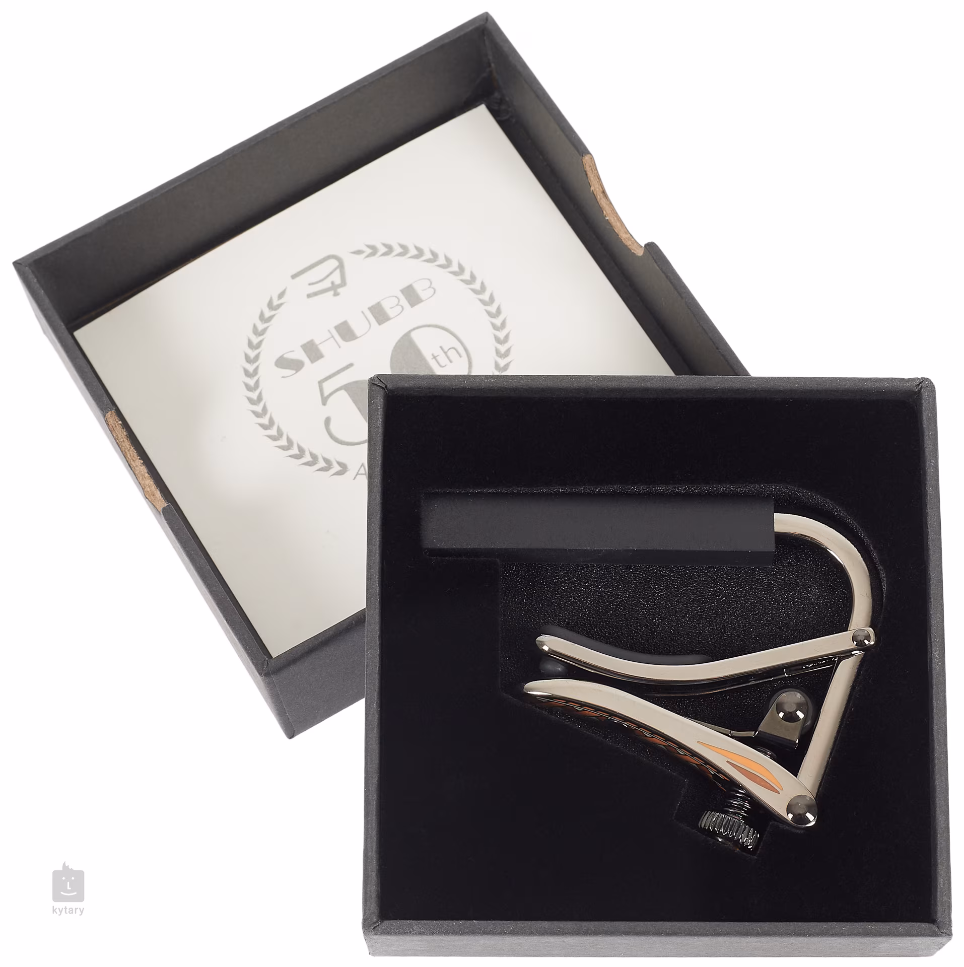C2 est la désignation des capodastres de la série standard de Shubb, dont le design a été revu en 2013. Les modèles actuels présentent des caractéristiques que l'on ne trouvait auparavant que sur les capodastres de la série Deluxe. La série 50th Anniversary, comme son nom l'indique, célèbre ses cinquante ans et se caractérise par un design incroyablement accrocheur qui s'harmonise avec n'importe quel instrument.
