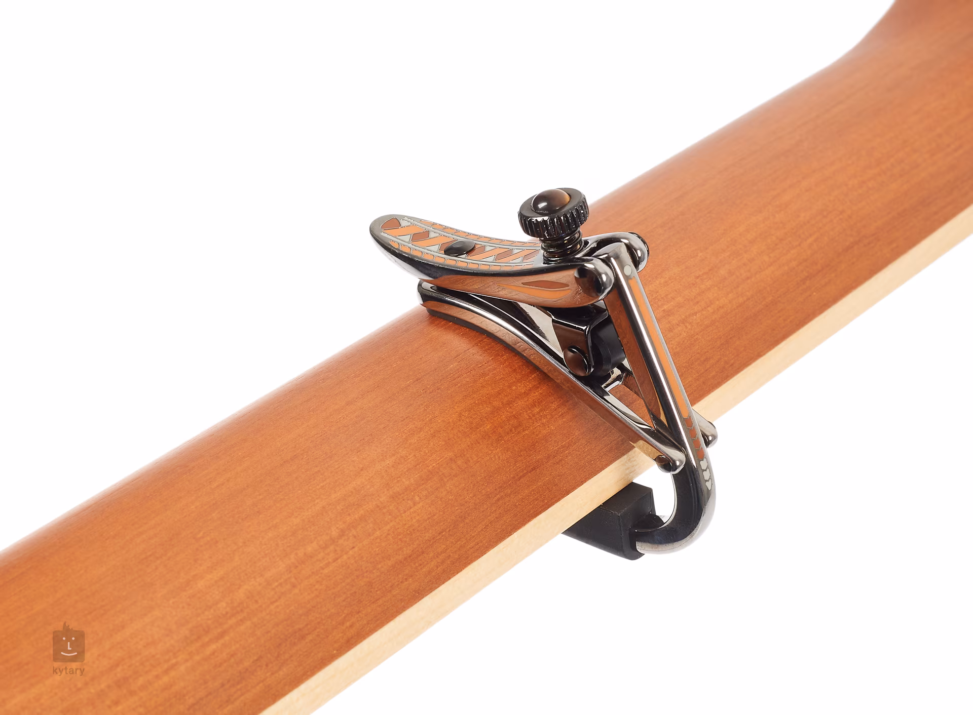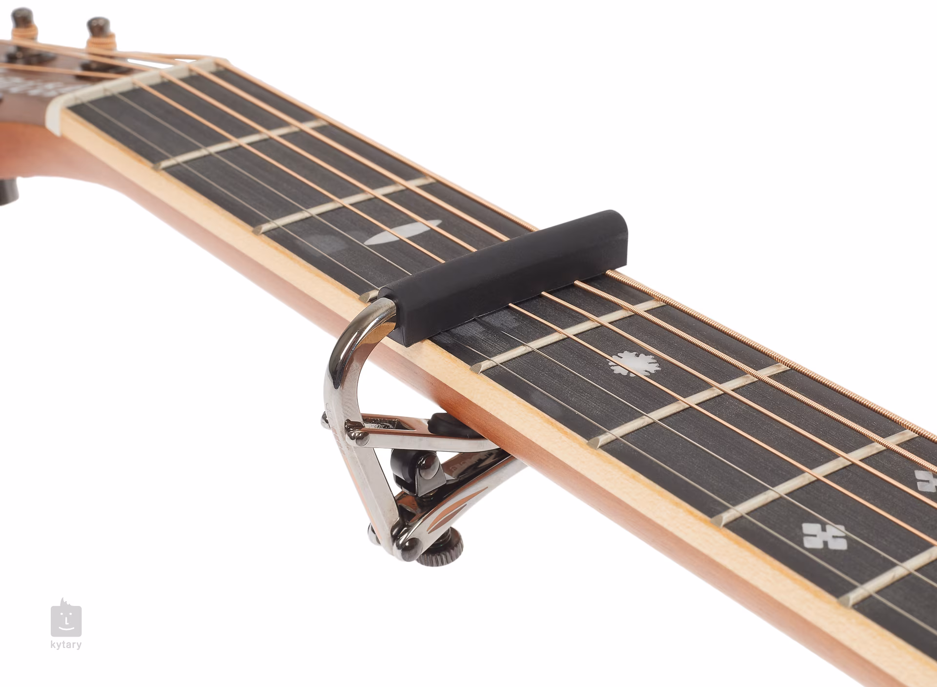 Grâce à la forme bien pensée de chaque composant, le capodastre est facile à mettre et à enlever, et peut être placé à n'importe quel endroit du manche sans aucun problème. Il garantit également que la pression exercée sur les cordes est toujours optimale - le cabestan maintient les cordes suffisamment fermement, sans pour autant les aplatir.