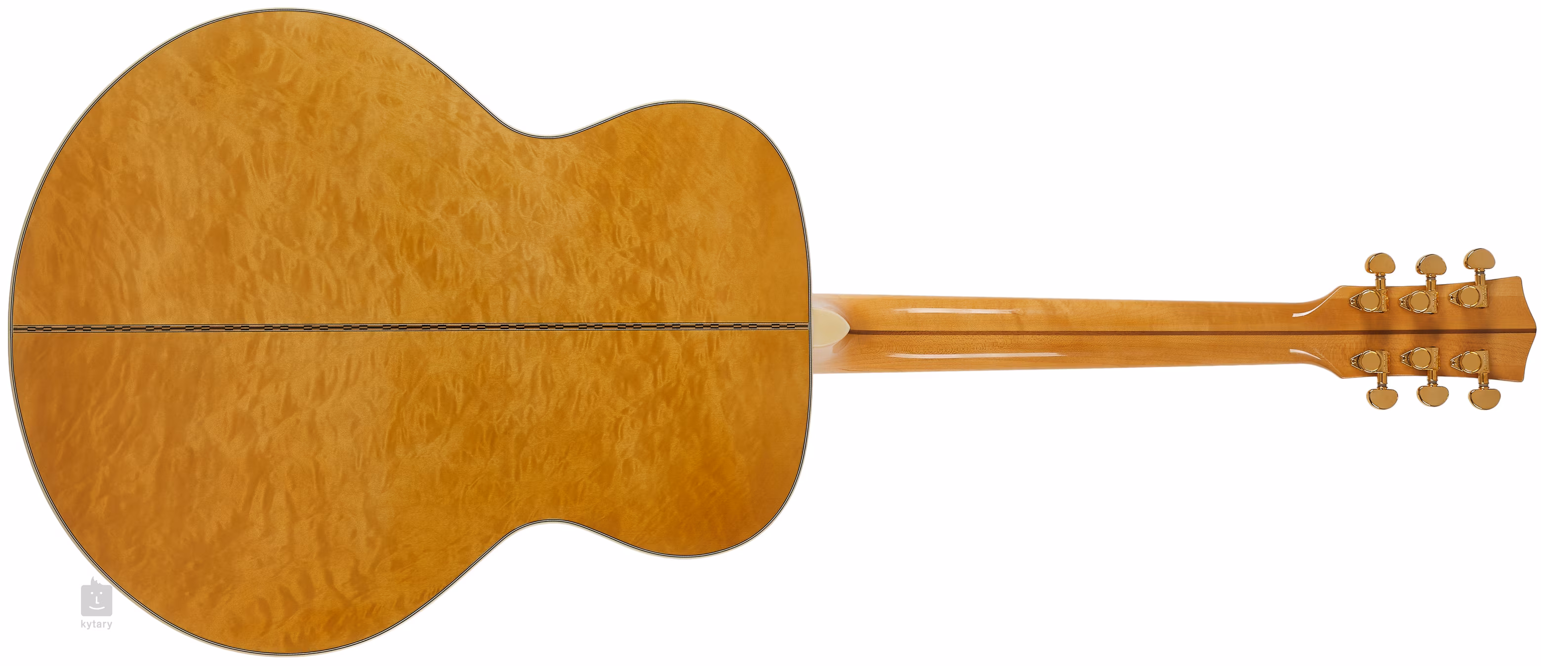 Le son de la guitare est assuré par un préampli Fishman Sonitone avec des commandes de volume et de tonalité subtilement placées dans la rosace de l'instrument. Les cordes sont montées dans des mécaniques d'accordage Grover Die-Cast en finition dorée. La frette zéro et le sillet en os compensé garantissent une transmission idéale des vibrations des cordes. L'aspect élégant de la guitare est accentué par une table en laque brillante, un pickguard décoré de motifs graphiques familiers aux modèles Gibson SJ-200, une touche en forme de moustache, une bordure de corps blanche avec des lignes noires, une décoration de la plaque arrière et un logo sur la tête.