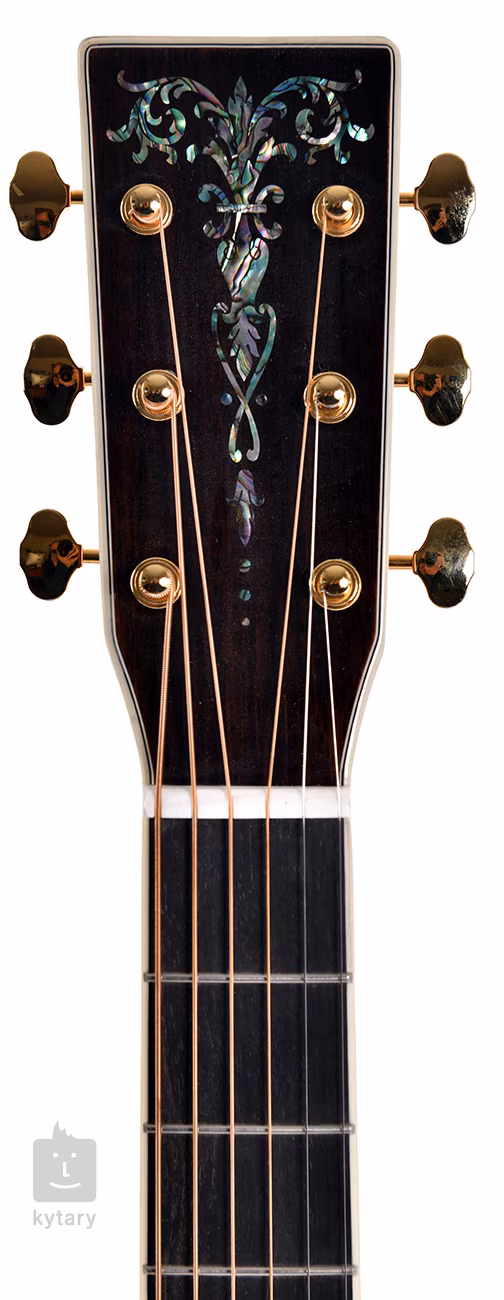 Les cordes sont maintenues par des diapasons ouverts Grover avec des chevilles Butterbean et une touche en ébène. La frette zéro et le sillet en os compensé assurent une transmission idéale des vibrations des cordes. La finition élégante est accentuée par un accastillage doré, un pickguard en imitation écaille de tortue, un habillage périmétrique du corps avec une languette de pickguard, des repères de position en nacre et une incrustation sur la tête de la guitare.