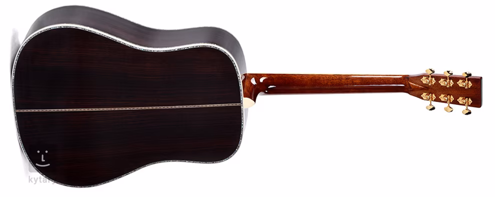 Les cordes sont fixées à des diapasons ouverts Grover avec des chevilles Butterbean et une touche en ébène. La frette zéro et le sillet en os compensé assurent une transmission idéale des vibrations des cordes. La finition sunburst de la table d'harmonie, l'habillage ivoire du corps, les barrages avant et arrière, le pickguard noir, l'accastillage doré et le logo de l'entreprise sur la tête de la guitare soulignent la qualité de la fabrication.