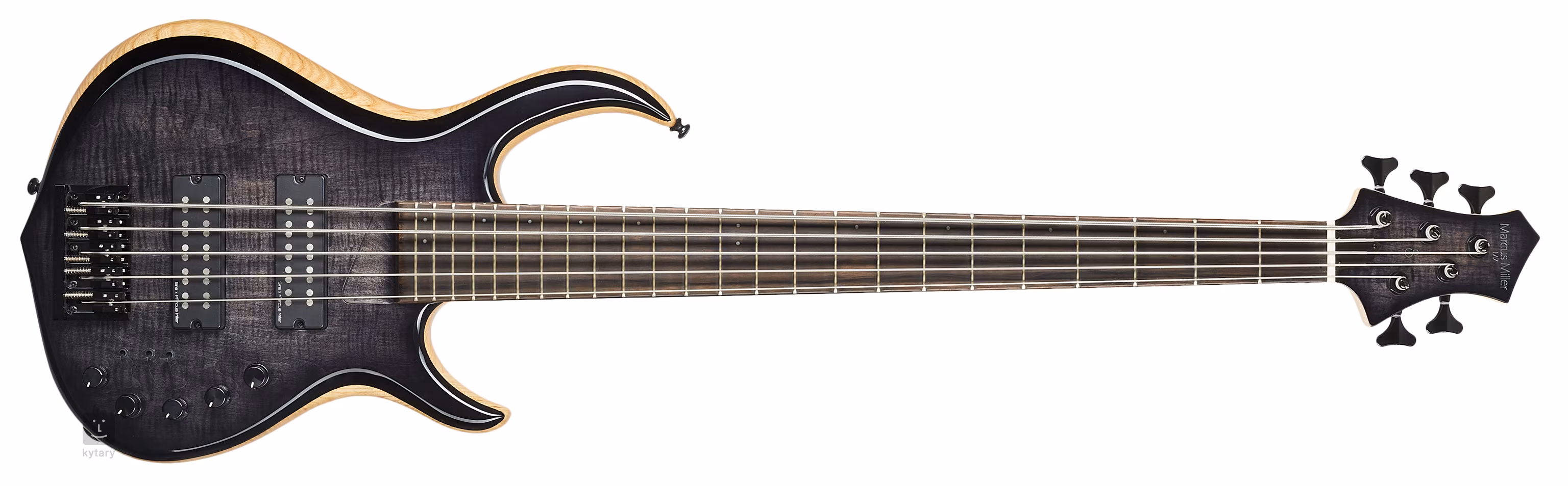 L'électronique active Marcus Miller Heritage-3 avec un égaliseur à trois bandes, un réglage de volume entre les micros et un potentiomètre combiné de tone-shutter et de volume général contribue de manière significative au son final de cette basse. En plus du gain et de l'atténuation, la commande centrale combinée permet également de sélectionner une fréquence spécifique entre 80 Hz et 2 kHz. La basse est équipée de deux humbuckers et d'un trio de commutateurs à trois positions pour sélectionner les micros et le mode actif ou passif. La basse est très variable sur le plan sonore et trouve son application dans un large éventail de genres musicaux et de styles de jeu.