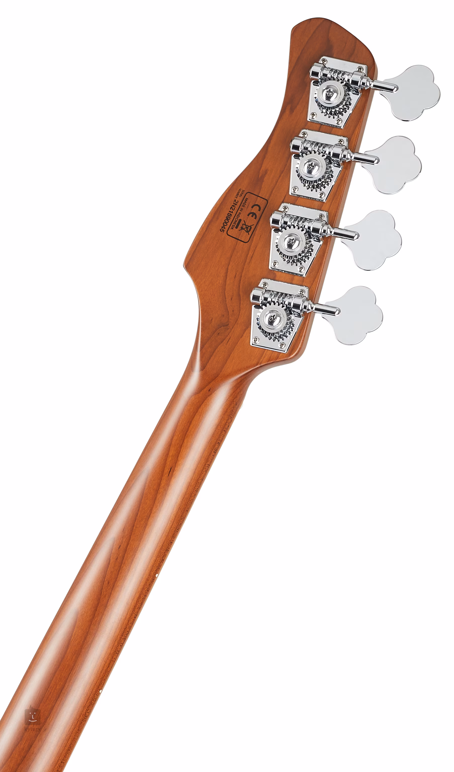 La basse est basée sur le type Precision Bass et s'enrichit des caractéristiques propres à Miller. Le corps en aulne d'Amérique du Nord est plus souvent utilisé sur des instruments jusqu'à trois fois plus chers, mais cela fait également partie du concept susmentionné. Le bois a un son plein typique avec des médiums puissants. Le manche en érable est vissé au corps avec une finition spéciale "roasted" qui confère au bois les caractéristiques sonores des instruments vintage d'antan, ainsi qu'un look élégant. Une autre caractéristique particulière est la touche en os, par exemple, ou les bords arrondis de la touche, que l'on ne trouve généralement que sur des instruments beaucoup plus chers et qui rendent l'expérience de jeu encore plus agréable.