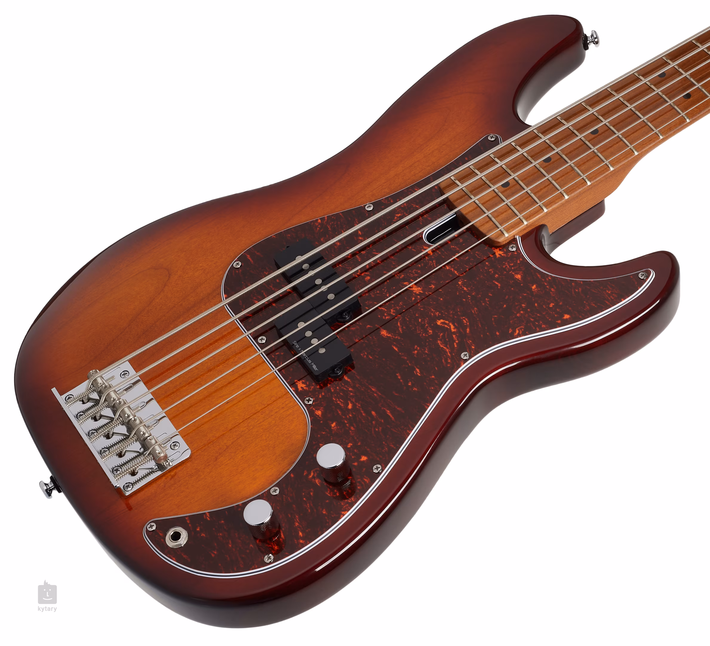 La basse est basée sur le type Precision Bass et s'enrichit des caractéristiques propres à Miller. Le corps en aulne d'Amérique du Nord est plus souvent utilisé sur des instruments jusqu'à trois fois plus chers, mais cela fait également partie du concept susmentionné. Le bois a un son plein typique avec des médiums puissants. Le manche en érable est vissé au corps avec une finition spéciale "roasted" qui confère au bois les caractéristiques sonores des instruments vintage d'antan, ainsi qu'un look élégant. Une autre caractéristique particulière est la touche en os, par exemple, ou les bords arrondis de la touche, que l'on ne trouve généralement que sur des instruments beaucoup plus chers et qui rendent l'expérience de jeu encore plus agréable.