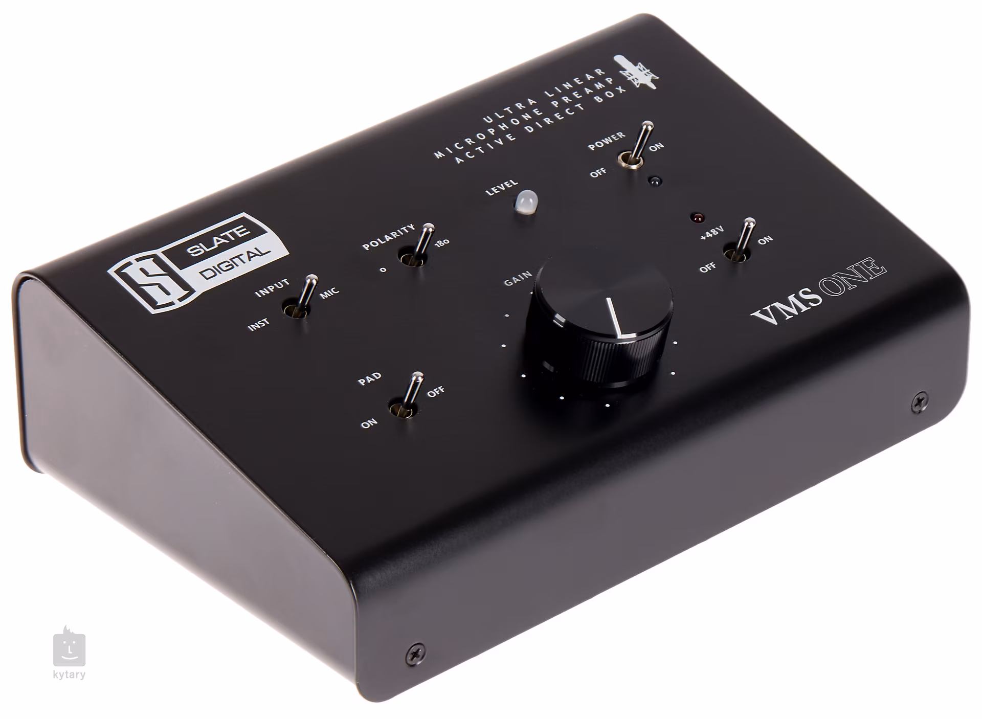 Le préampli VMS One est un préampli micro a canal unique ultra-linéaire entierement compatible avec les microphones hybrides ML-1 et ML-2. Le VMS One est l'intermédiaire entre les microphones et le systeme intuitif Virtual Mixrack de Slate Digital. Le panneau principal comporte une commande de gain robuste et des commutateurs pour la configuration la plus optimale de vos microphones ou instruments de musique. Le panneau arriere offre ensuite une entrée combinée XLR/Jack, des sorties stéréo avec des connecteurs d'entrée/sortie XLR, Jack et 5 broches pour alimenter votre préampli et d'autres appareils.