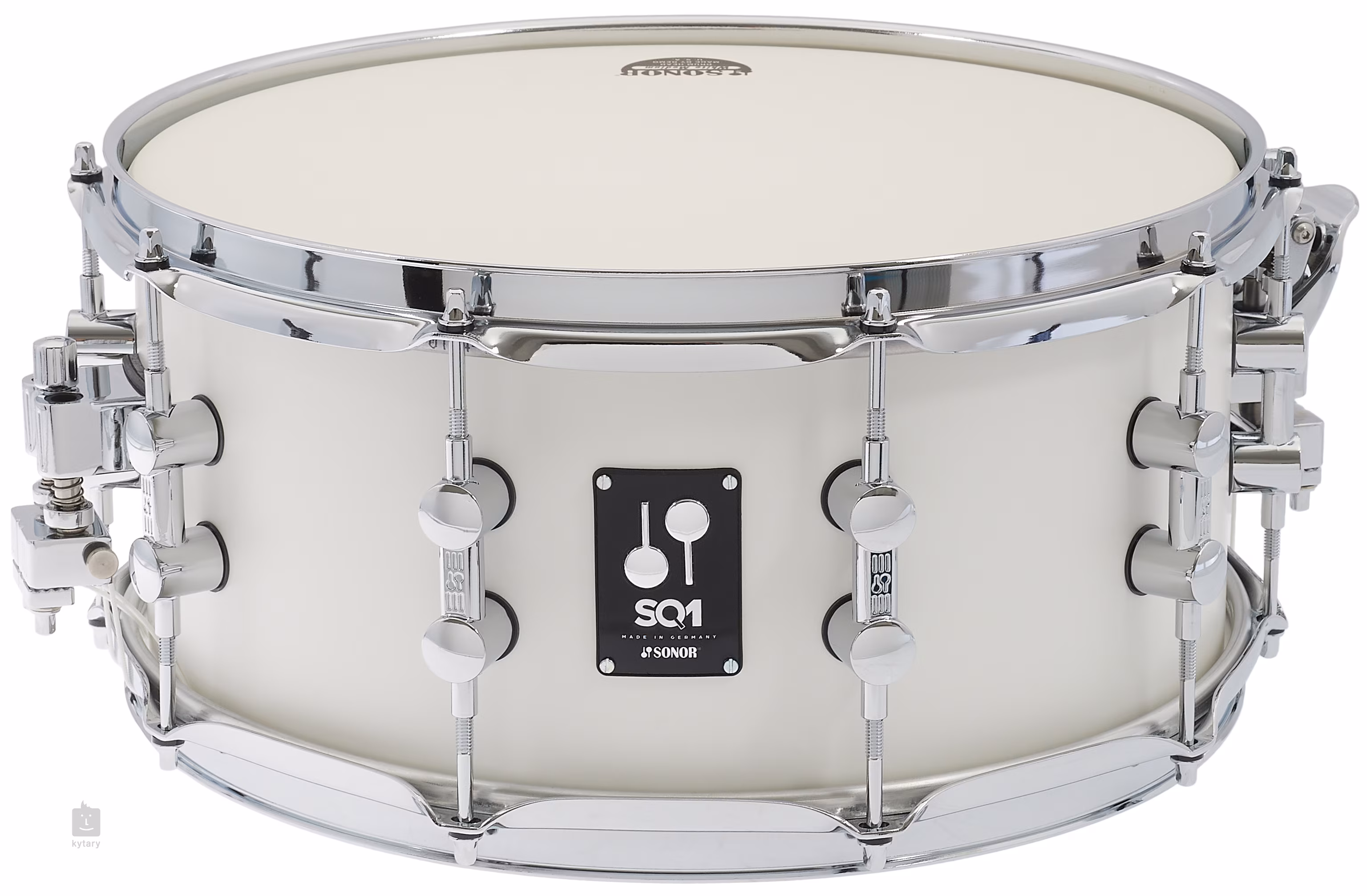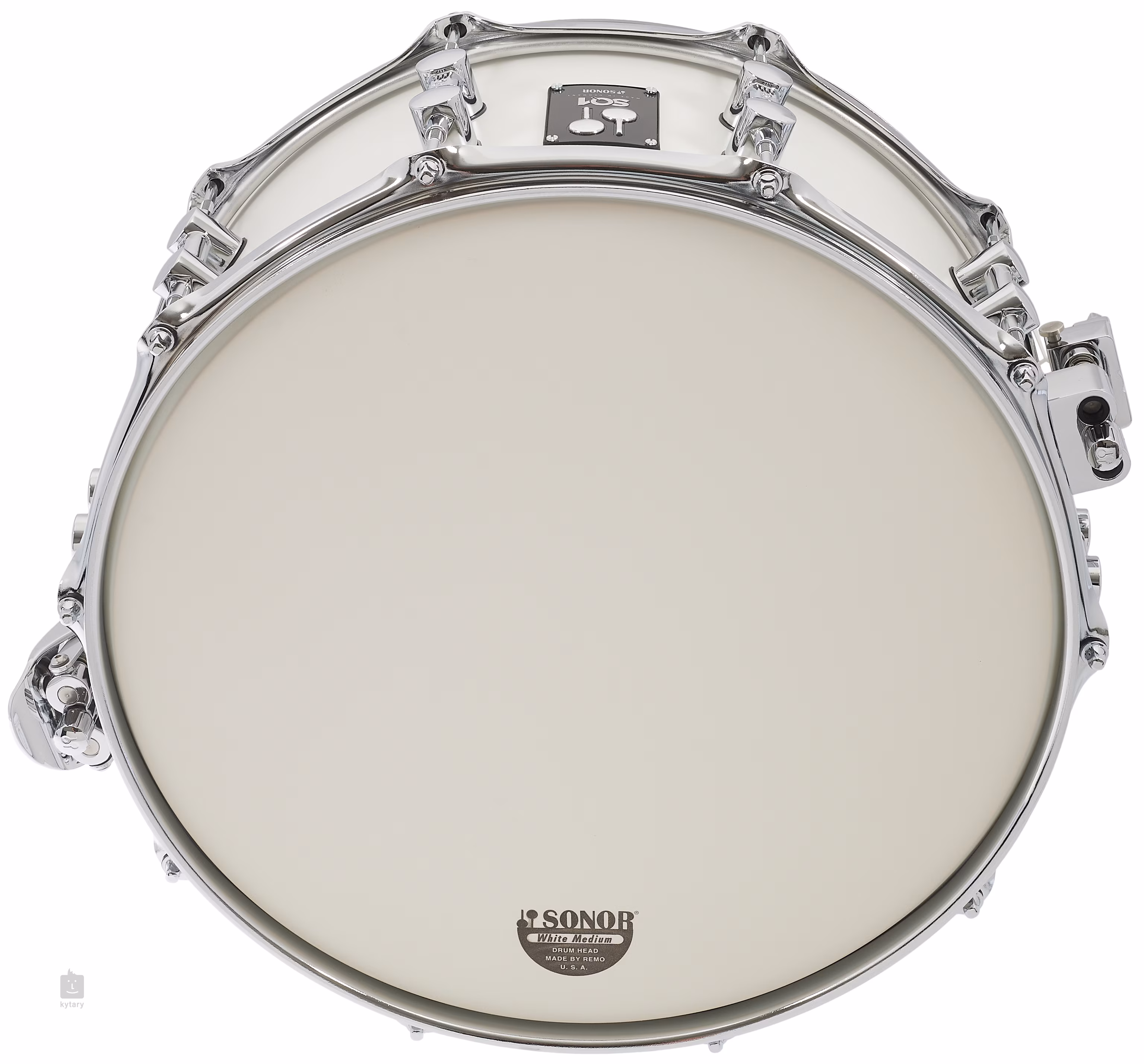 Le corps est en bouleau de poids moyen, 7 couches d'une épaisseur de 7 mm. Les bords d'appui sont à 45° et les jantes sont des Power Hoops de 2,3 mm. Les vis d'accordage sont des SONOR Double Lugs avec un pas de 40mm et l'accastillage est chromé.