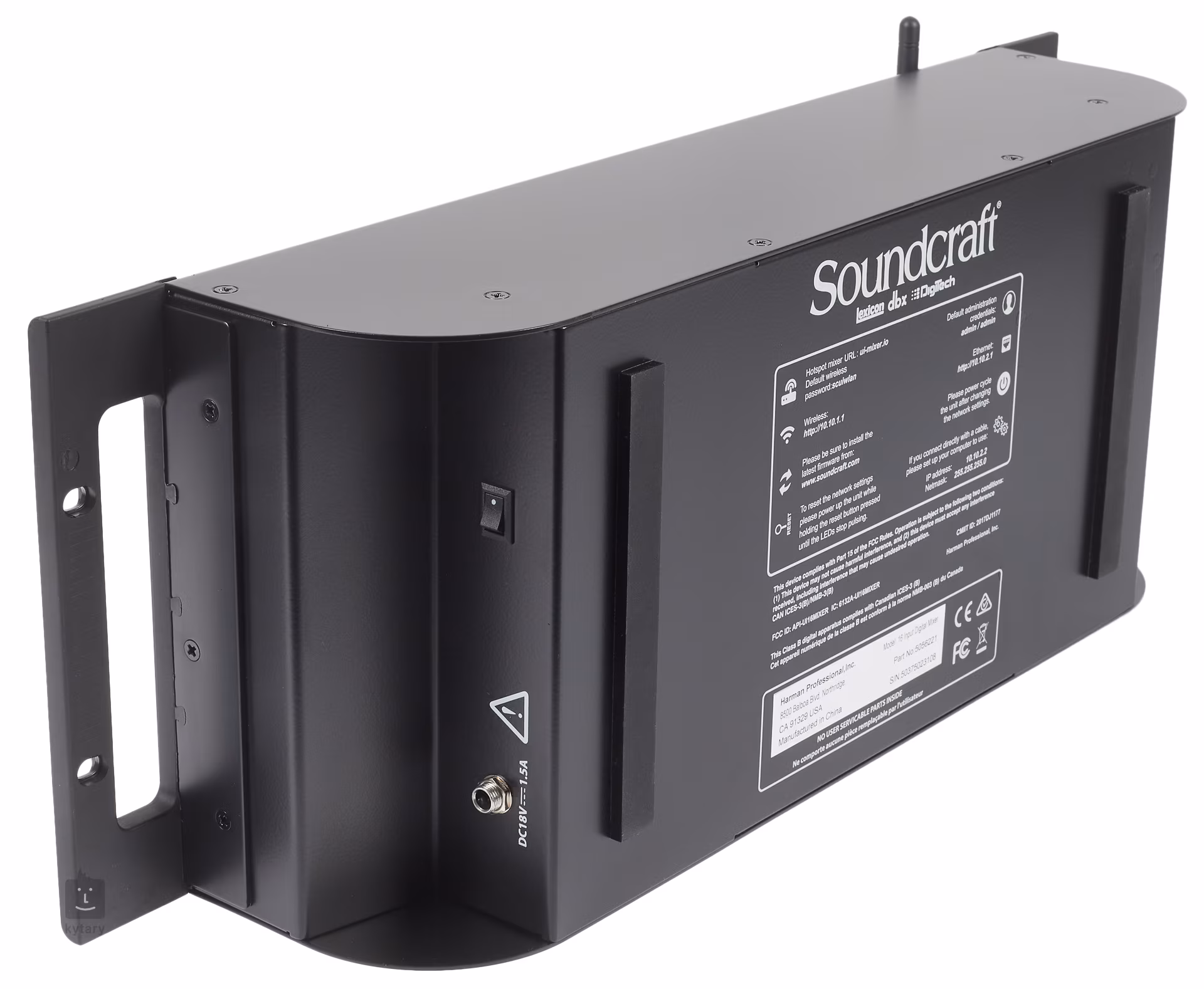 La console de mixage est équipée du traitement du signal Harman de DigiTech, de dbx et de Lexicon, y compris la modélisation d'ampli AFS2 et bien d'autres choses encore. Les canaux d'entrée sont équipés de fonctions contrôlables à distance telles que le gain, l'alimentation fantôme, l'égaliseur à quatre bandes, le filtre passe-haut, le compresseur, le dé-esseur et le noise gate. A la sortie, nous trouvons un égaliseur graphique à 31 bandes, un noise gate et un compresseur. La console de mixage peut également analyser les fréquences en temps réel sur l'entrée et la sortie (RTA). L'appareil est équipé des effets Lexicon Reverb, Delay et Chorus.