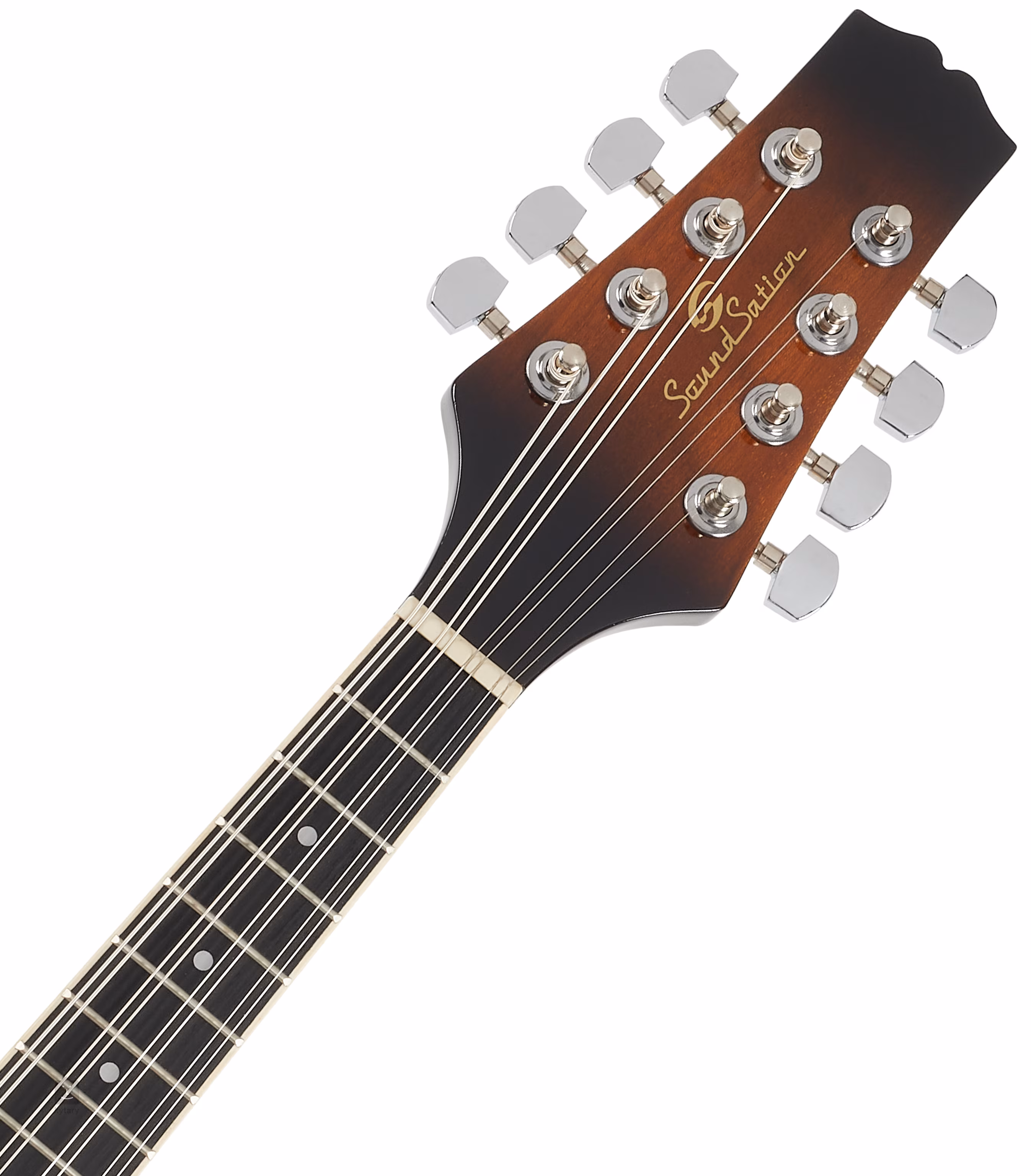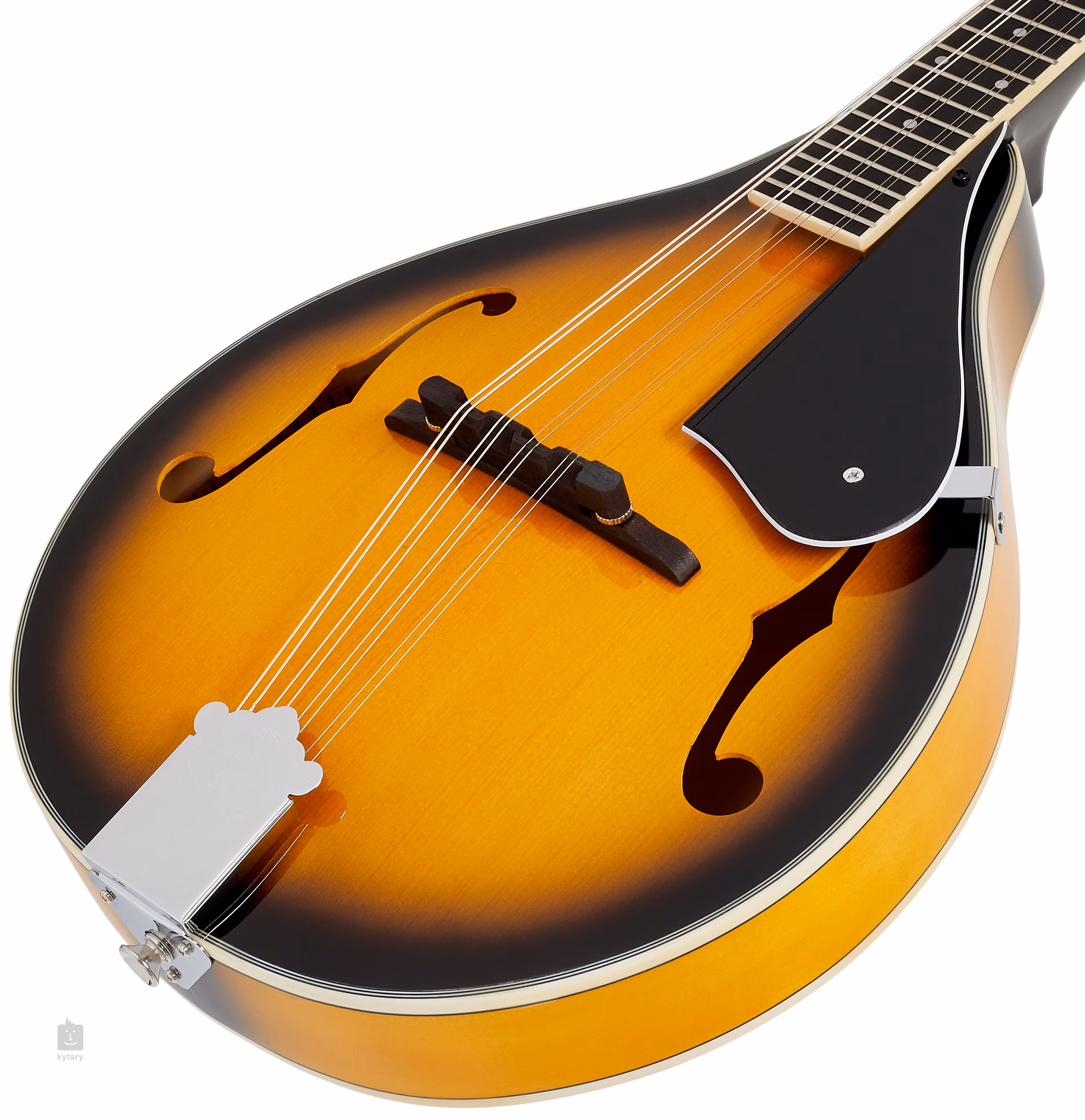 La Soundsation BMA-50 VS est une mandoline A abordable avec une table d'harmonie en épicéa stratifié et un dos et des éclisses en tilleul stratifié. Une touche en noyer de 23 frettes est collée sur le manche en érable. Les cordes sont montées dans des mécaniques chromées et dans la table d'harmonie. La finition élégante est accentuée par la reliure périmétrique blanche et la plaque de protection noire.
