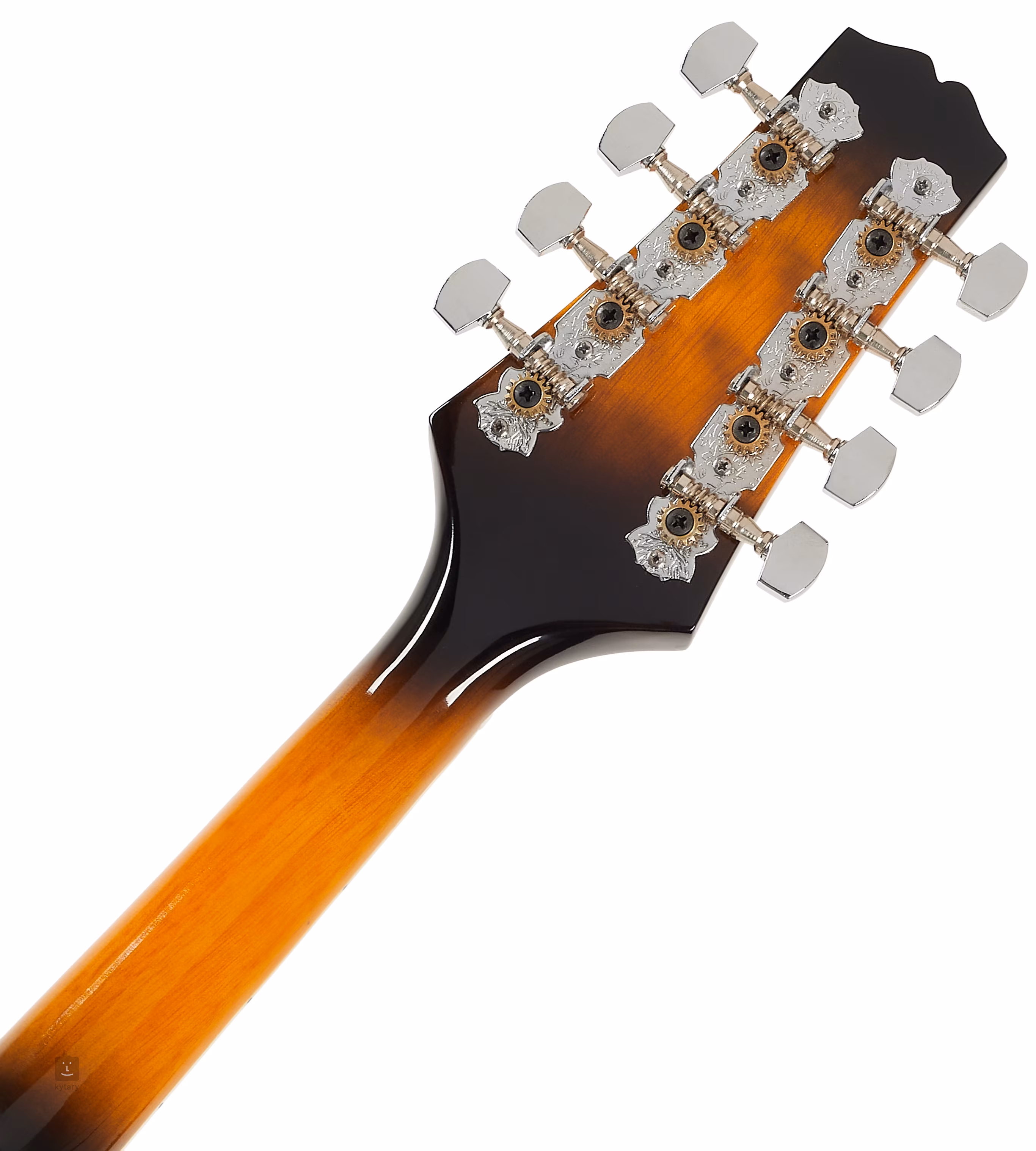 La Soundsation BMA-60 VS est une mandoline A abordable avec une table d'harmonie en épicéa stratifié et un dos et des éclisses en acajou stratifié. Une touche en noyer de 23 frettes est collée sur le manche en érable. Les cordes sont montées dans des mécaniques chromées et dans la table d'harmonie. La finition élégante est accentuée par la reliure périmétrique blanche et la plaque de protection noire.