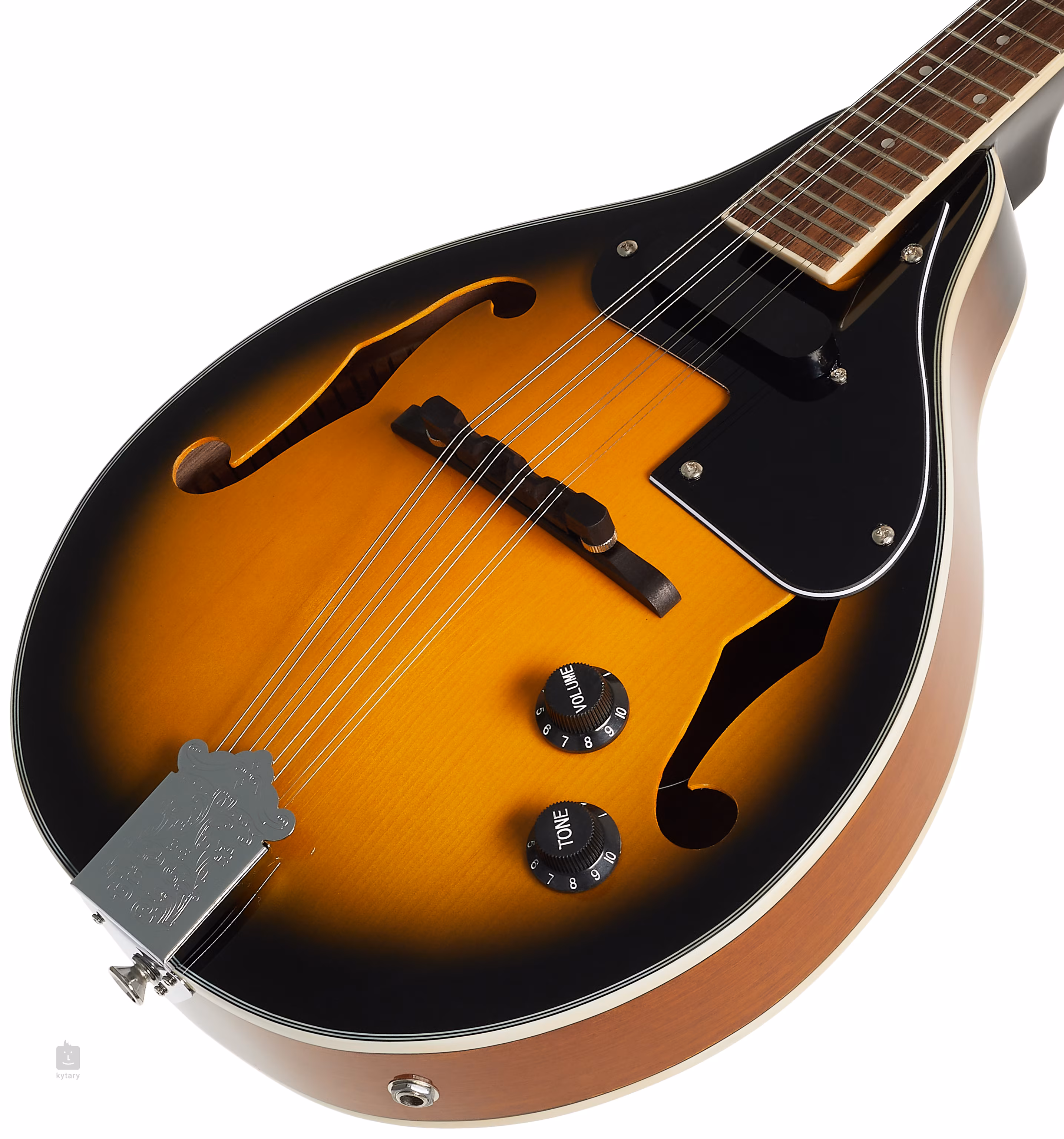 La Soundsation BMA-60E VS est une mandoline A abordable avec une table d'harmonie en épicéa stratifié et un dos et des éclisses en acajou stratifié. Le manche en acajou est doté d'une touche en noyer avec 23 frettes. Les cordes sont montées dans des mécaniques chromées et dans la table d'harmonie. La finition élégante est accentuée par la bordure blanche et la plaque de protection noire.