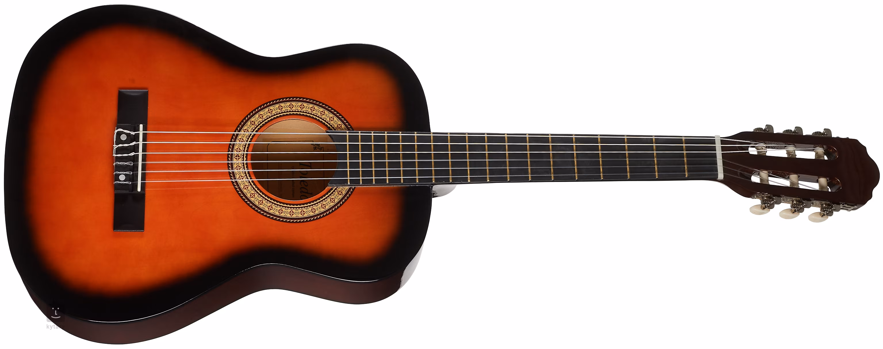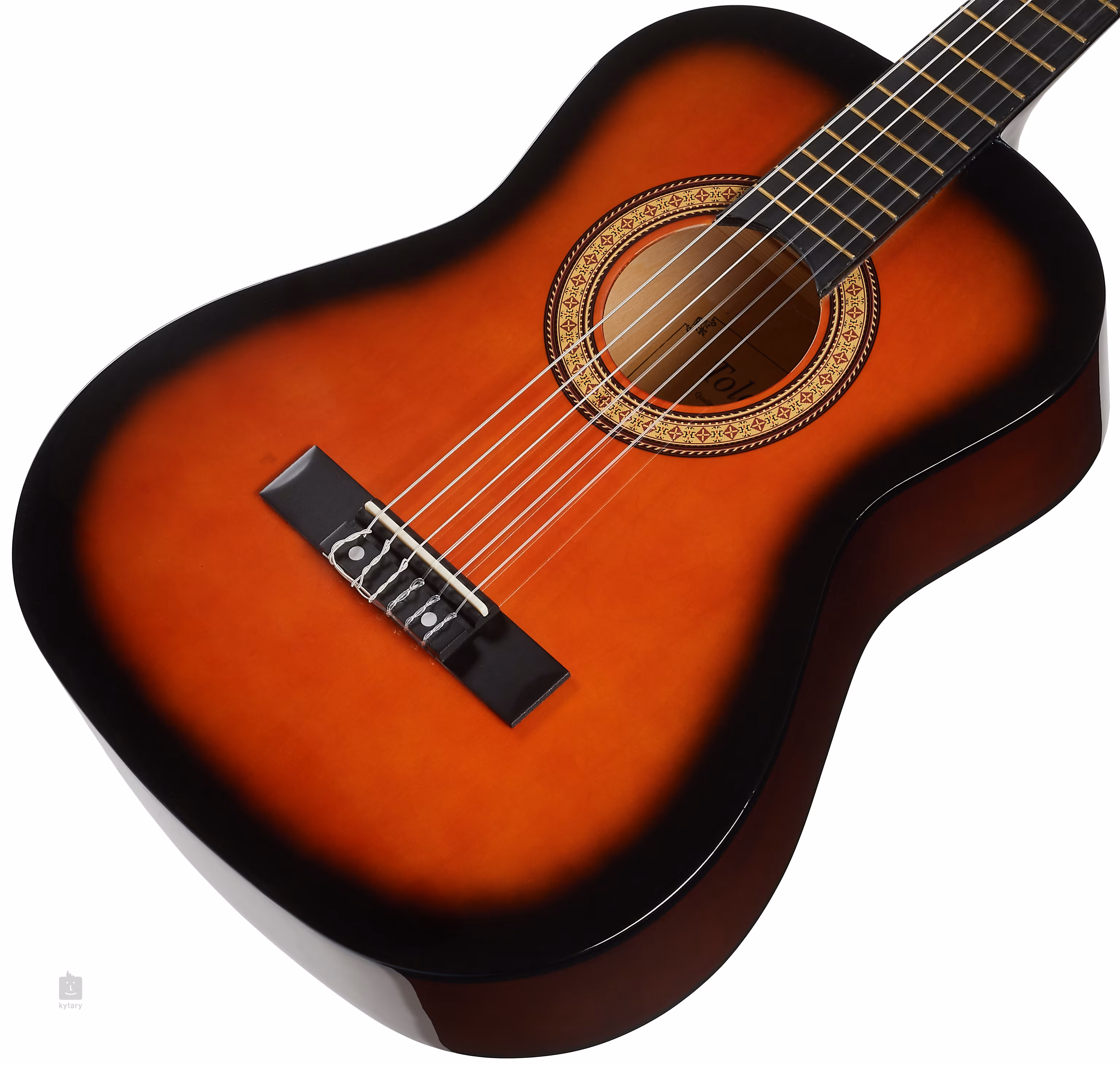 Les guitares classiques Marisol de Soundsation sont des instruments abordables conçus pour les musiciens débutants. La Marisol 34SB est une guitare classique pour enfants de taille 3/4 avec un corps en tilleul stratifié fini en laque brillante, une touche en bois dur, des mécaniques standard et des touches traditionnelles telles que la reliure noire et la rosace décorative. La guitare est livrée dans un sac de transport.