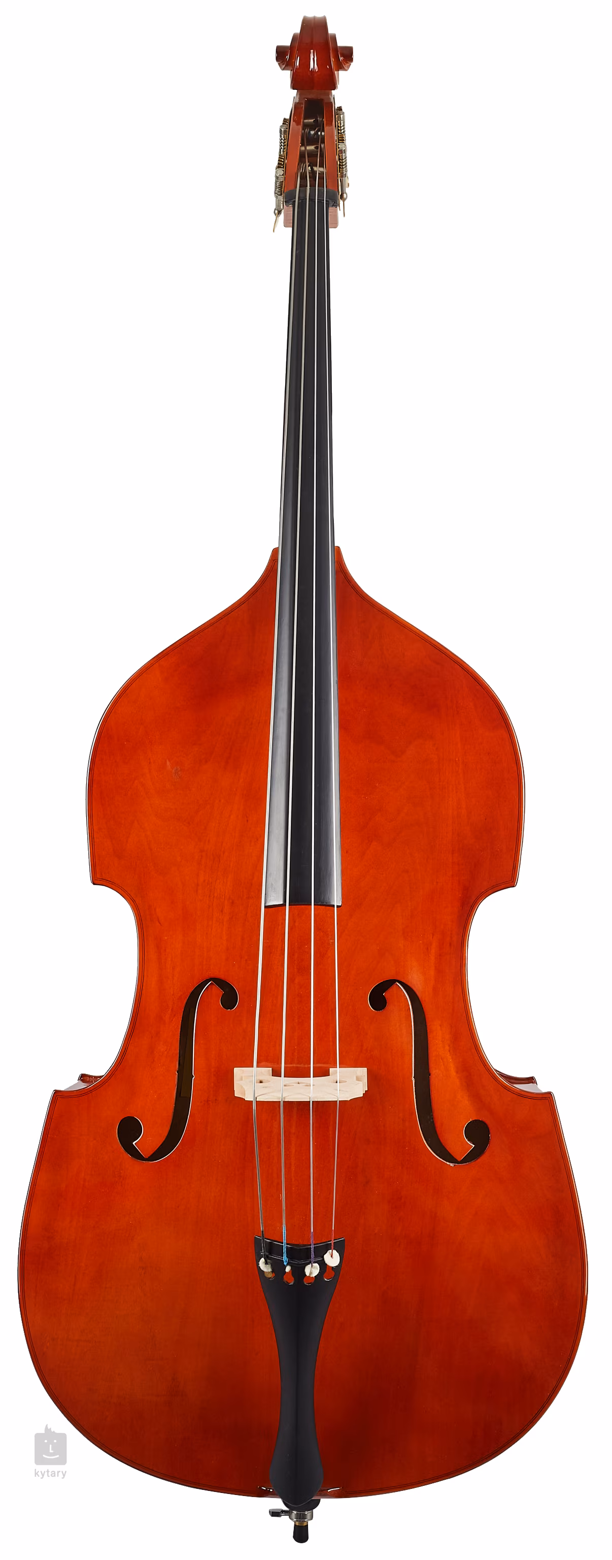 La caisse de l'instrument est finie dans une jolie couleur brun cerise avec des bandes de chant, la touche est en érable et le manche en alliage d'aluminium. Les accessoires sont également inclus, et la basse est livrée avec un étui avec des sangles arriere et de la colophane, tout ce dont vous avez besoin pour commencer.