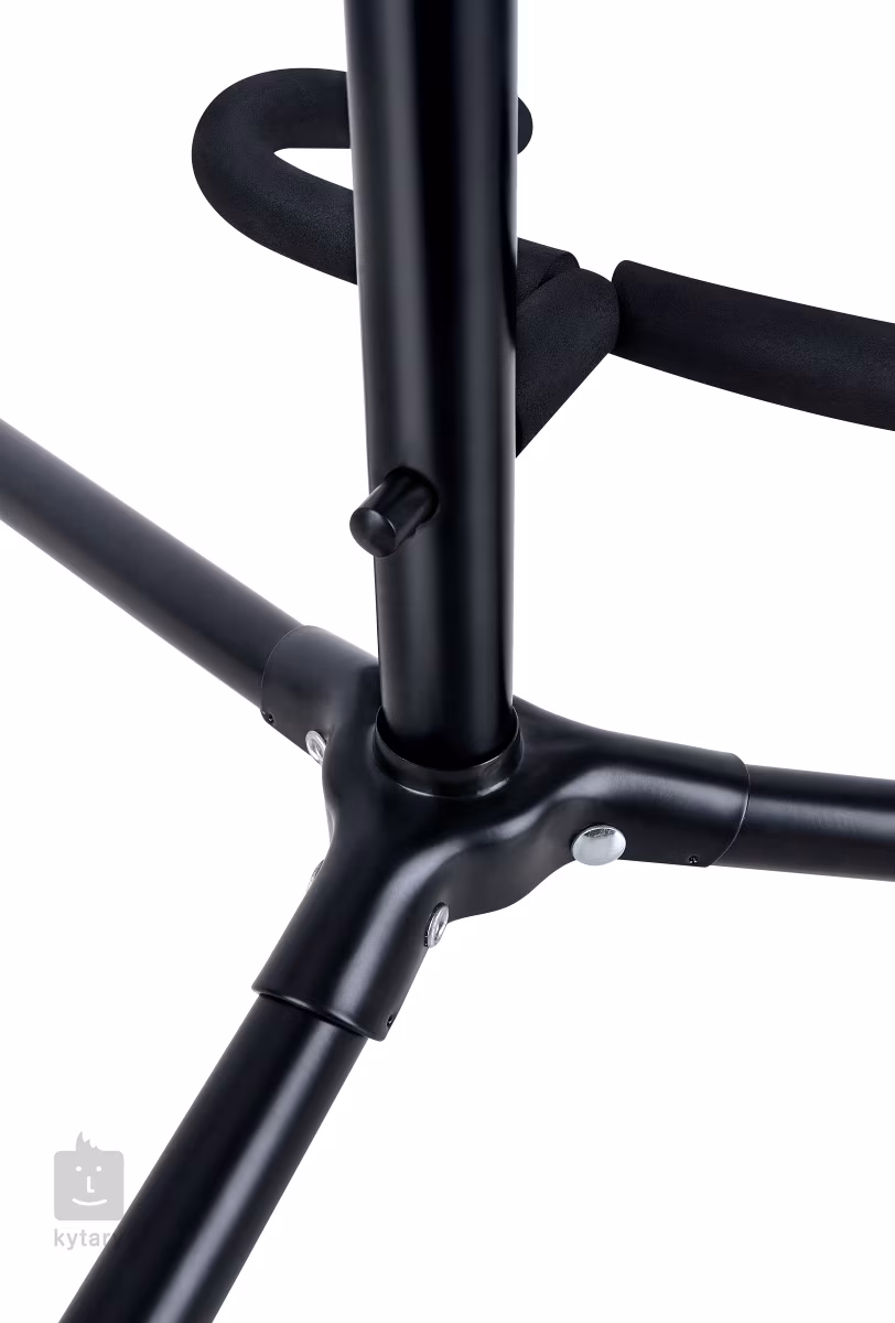Ce support de guitare universel en acier convient à tous les types de guitares/basses. Sa hauteur peut être réglée de 60 à 70 cm. Les parties en contact avec les instruments sont recouvertes d'une couche caoutchoutée souple pour éviter d'endommager la peinture des guitares. Sa stabilité est assurée par une base tripode d'une portée d'environ 54 cm.