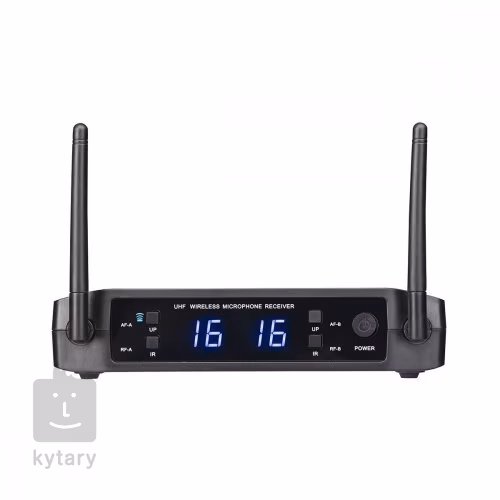 Le récepteur est équipé de deux antennes, d'un affichage clair indiquant le numéro du canal et de deux sorties XLR pour la connexion à une table de mixage ou à un système de sonorisation actif. L'émetteur peut fonctionner jusqu'à 5 heures et est alimenté par deux piles AA. L'ensemble est livré dans une mallette de transport.