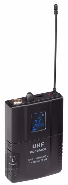 Le Soundsation WF-U216PP est un système sans fil UHF double à 16 canaux qui se compose de 2 microphones de casque, de 2 émetteurs de poche et d'un récepteur facilement réglable.